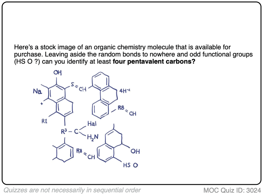 No kidding. I mean, where do you even start with this? Can you spot the heptavalent carbon?