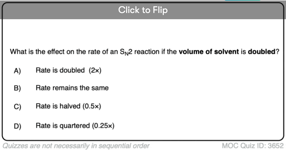 Note how the rate of the reaction is dependent on both the concentration of the nucleophile and that of the substrate. In other words, it’s a second-order reaction.