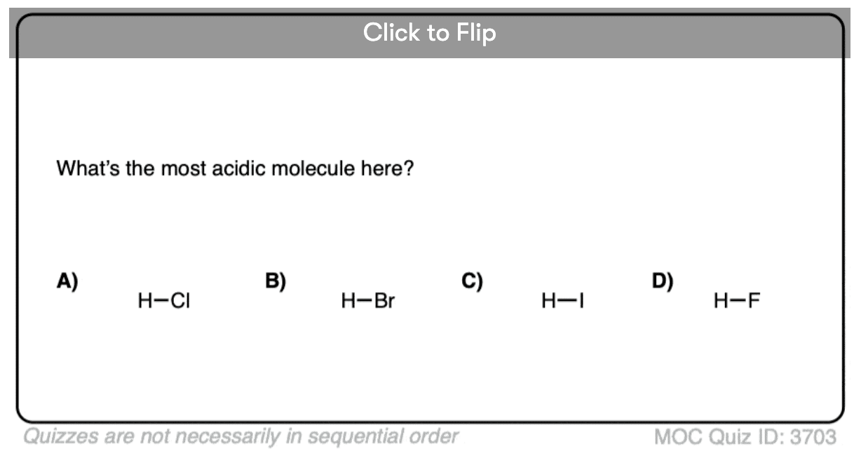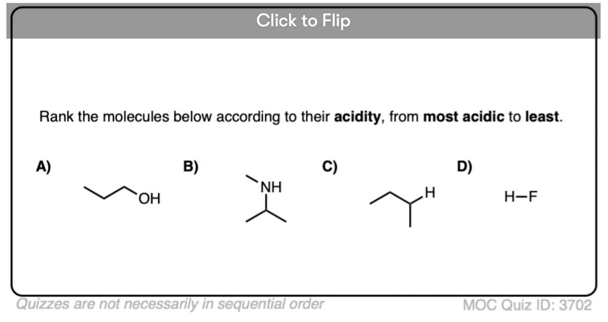 Today we’ll talk about five key factors that determine acidity for different molecules and a mnemonic (ARIO, or CARDIO) to help you remember these factors.