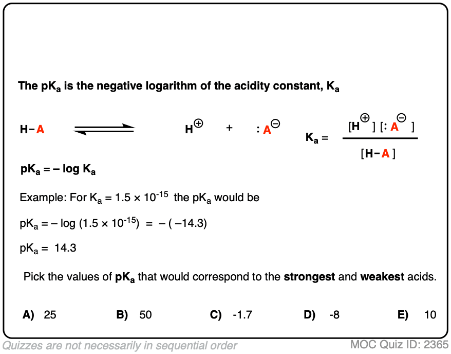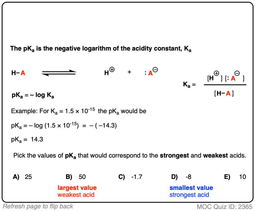 In order to get a better grasp on these numbers, we often take the negative logarithm of the acidity constant and call this pKa.