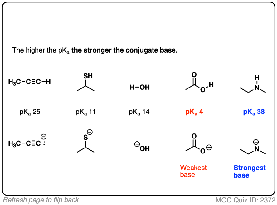 Instead, it’s true that the higher the pKa, the stronger the conjugate base.