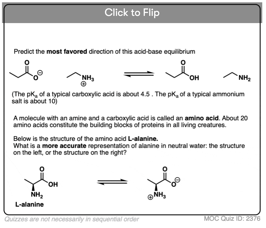 Using a pKa table, you can apply the Principle of Acid-Base Mediocrity and examine any random acid base reaction, once you have identified the main functional group.