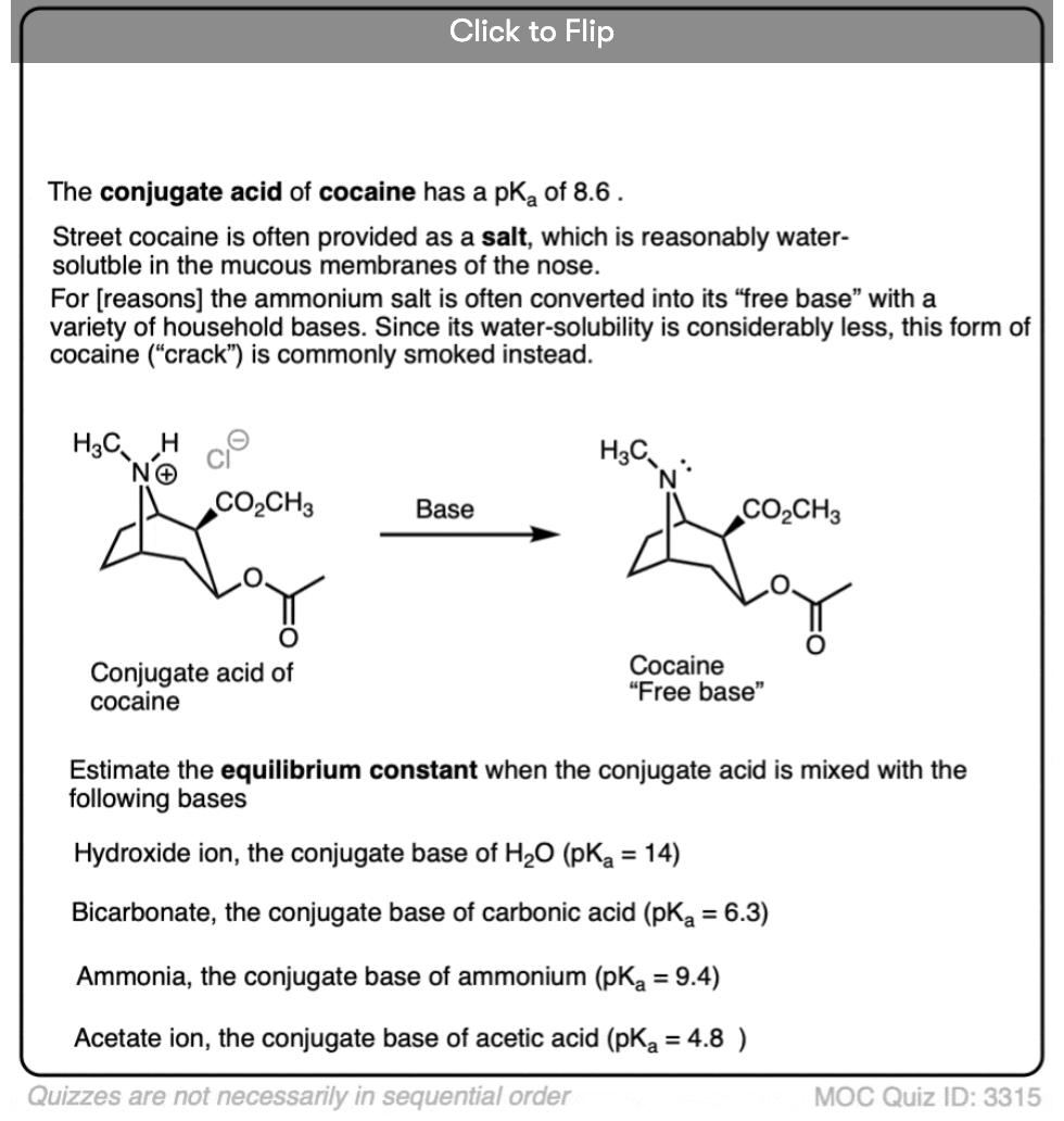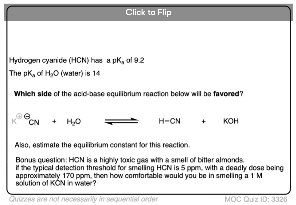 Hi James, marvellous post as usual. I think I’ve spotted a tiny error. At the end of section 3 you state that “Acid base reactions will favor formation of the acid with the lower pKa value”. I think this shoudl read “…the acid with the HIGHER pKa value”, as weaker acids have higher pKa values (and lower Ka values), right? Cheers, Jamie.