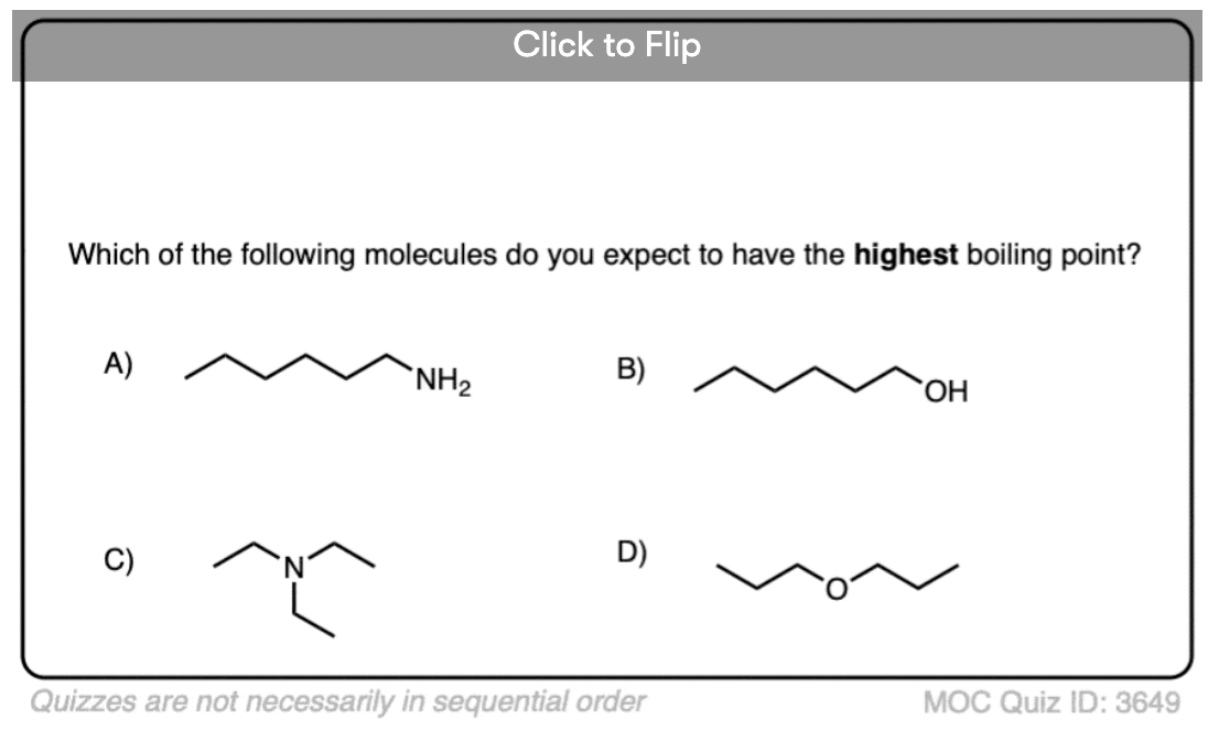 So in a sense, HO, and NH are “sticky”  – molecules containing these functional groups will tend to have higher boiling points than you would expect based on their molecular weight.