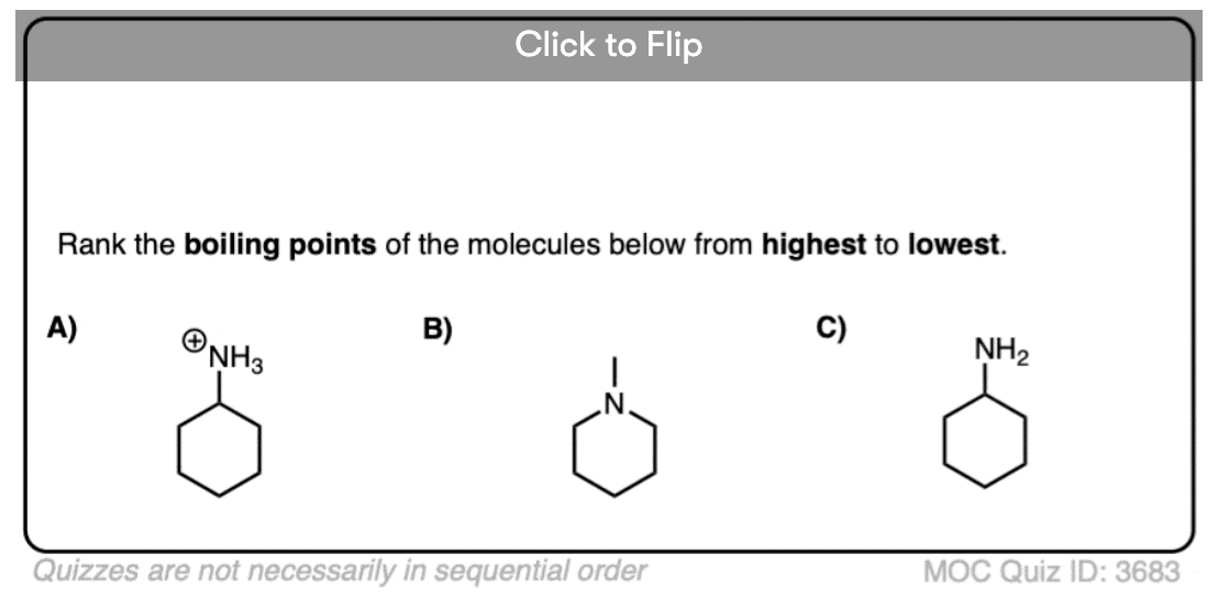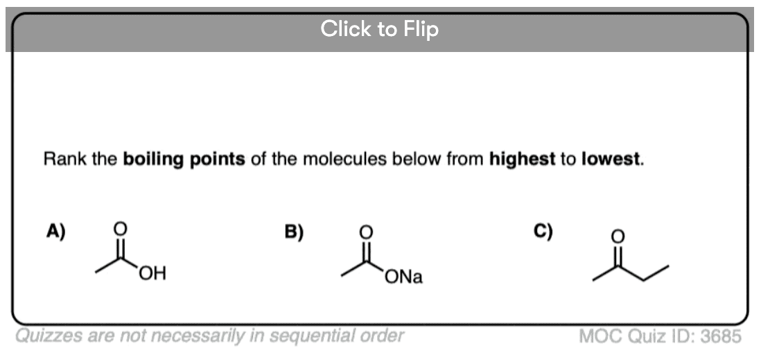 3. The strength of intermolecular forces (and therefore impact on boiling points) is  ionic > hydrogen bonding > dipole dipole > dispersion