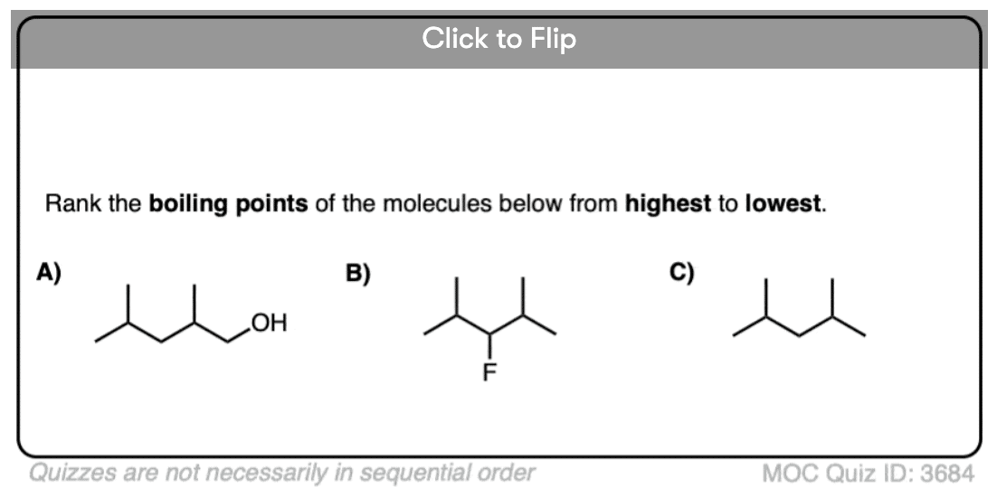[Determining trends for hydrocarbons can get a little bit tricky depending on the exact structure – symmetry also plays a role in boiling points and melting points. We talked about this in detail previously. (See Article – Branching And Melting Points)
