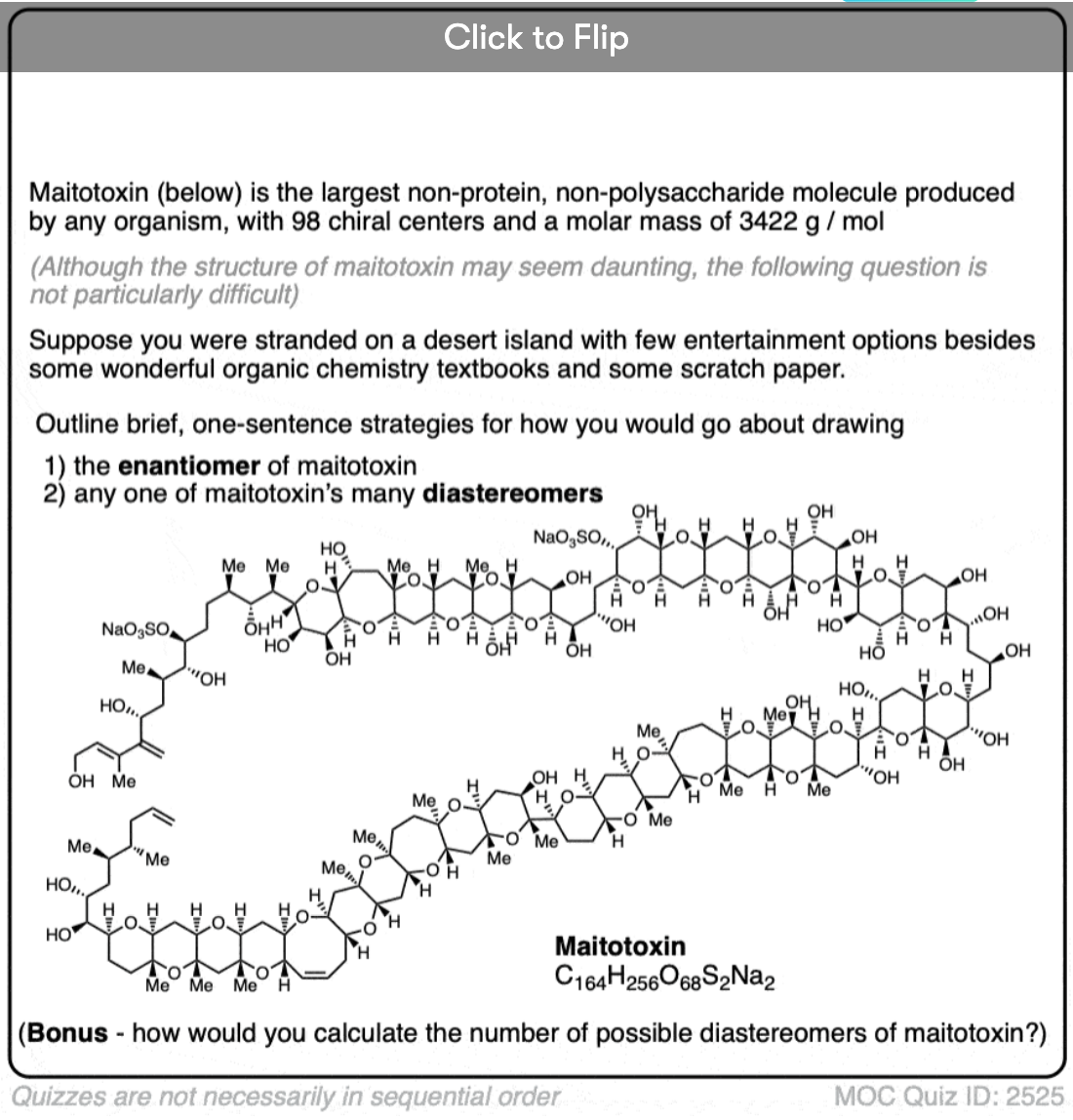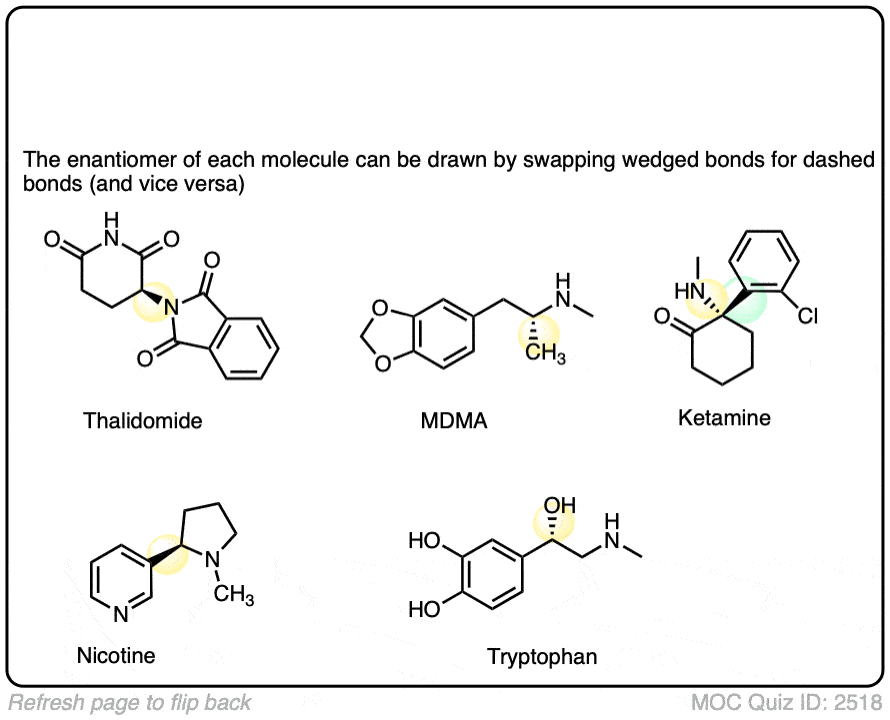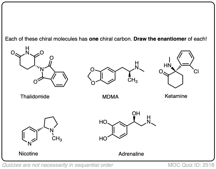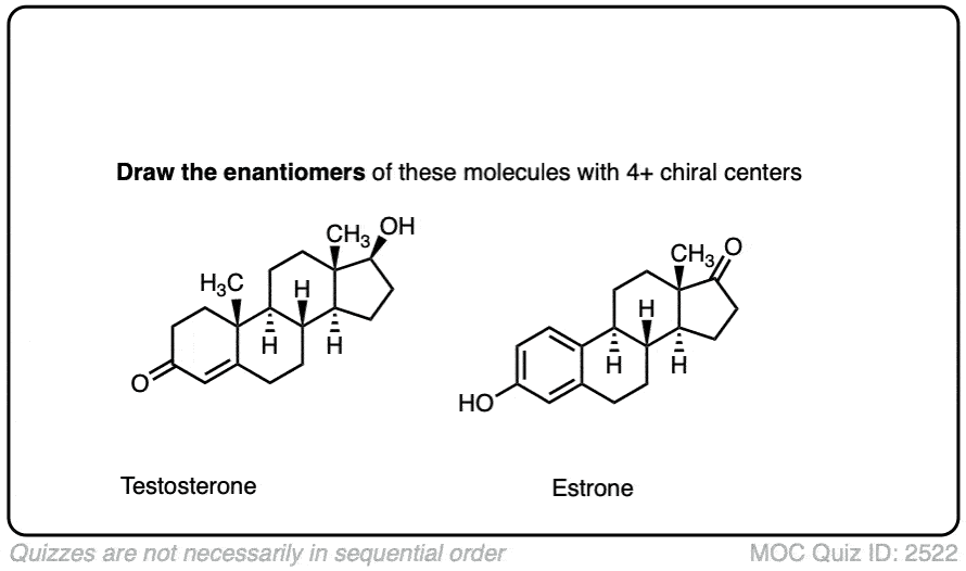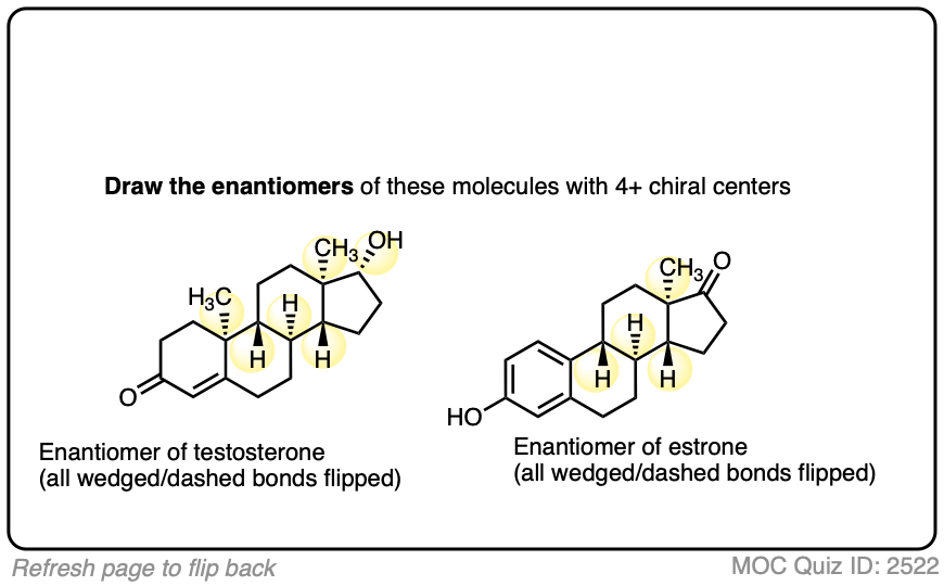 Let’s get even more ambitious. Here are two famous molecules with multiple chiral centers. See if you can draw their enantiomers.
