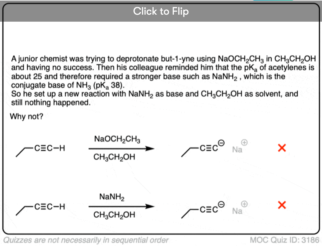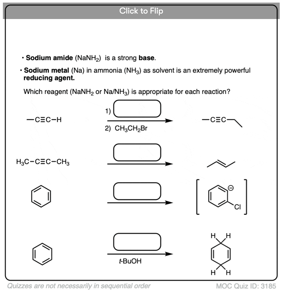 That is a great question. Unless you’re in an advanced class, I think the example you have should read NaNH2/NH3 since it’s a textbook example of elimination to give the acetylide.