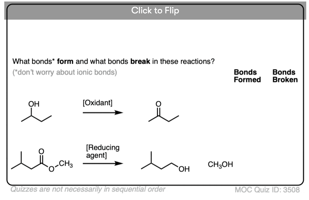 Because when I thought to ask, “what specific bonds are formed, and what specific bonds are broken”, the variance in how quickly (and correctly) students could answer would be HUGE.