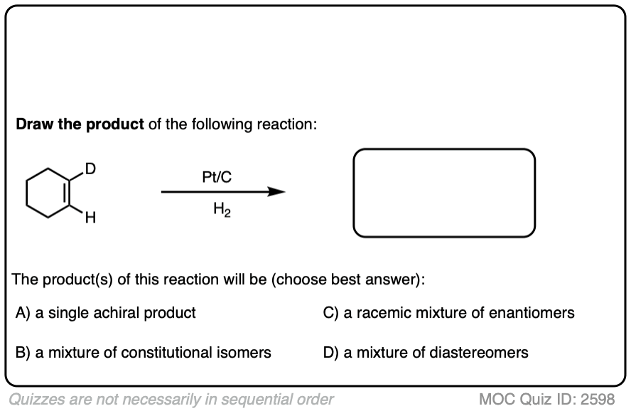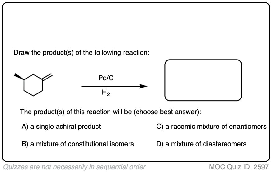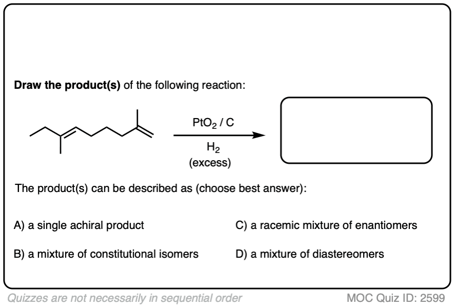 Note 3. Which catalyst should you use? For our purposes, Pd/C is good for pretty much everything, but some textbooks (and instructors) have quirks. For the curious, a good “which catalyst should you use” discussion for many different reactions can be found here (page 43).