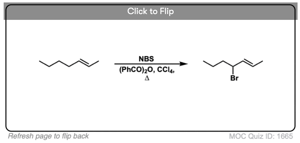 Note 2. As it happens, NBS which has been left out for awhile will usually be contaminated with trace HBr (as well as Br2, which gives it a yellow or orange colour). For this reason if doing a radical reaction with NBS it’s common to avoid recrystallizing it before use, as it will remove the trace acid that jump starts the reaction in the first place.