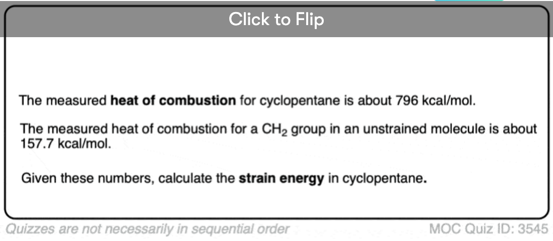In the last post, we saw that ring strain of cyclopropane and cyclobutane were 27 and 26 kcal/mol respectively. They are the unhappiest of rings – constrained into uncomfortable angles, with hydrogens forced by geometry to grumpily line up side-by-side with their repulsive neighbours.