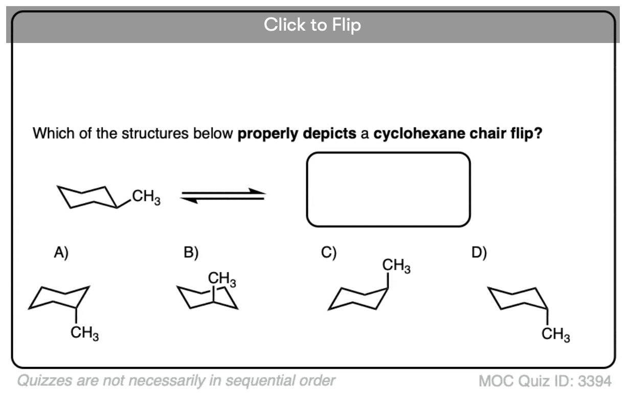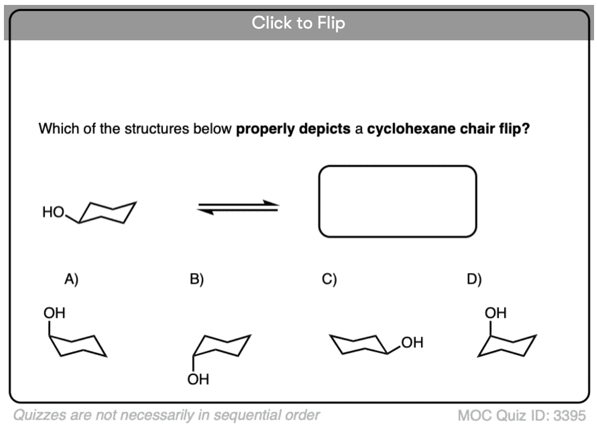 Your first thought might be – that’s pretty useless! Who cares if we just start with a cyclohexane chair and convert it into another cyclohexane chair. That’s like converting a dollar bill into four quarters and then exchanging them back into a dollar bill. It’s almost like nothing happened.