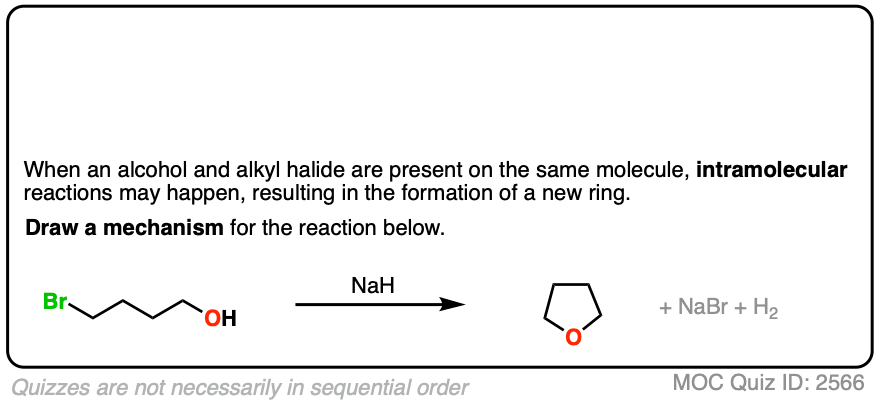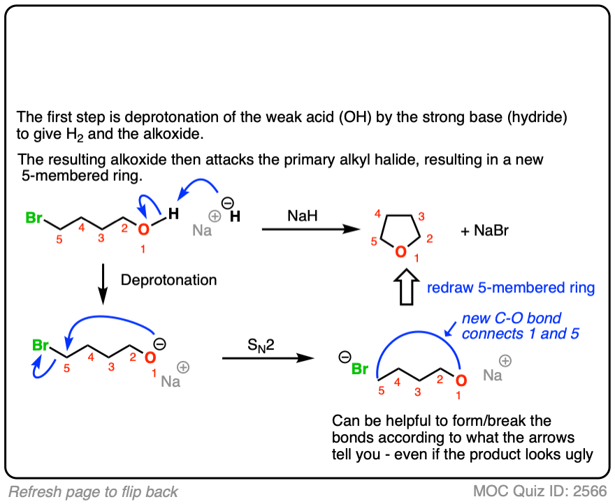 - When an alkoxide and alkyl halide are present on the same molecule, an intramolecular reaction may result to give a new ring. This works best for 5- and 6-membered rings.