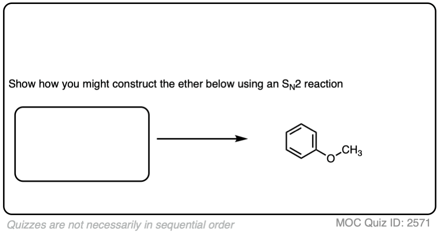 Our final quiz asks how to synthesize phenyl methyl ether.
