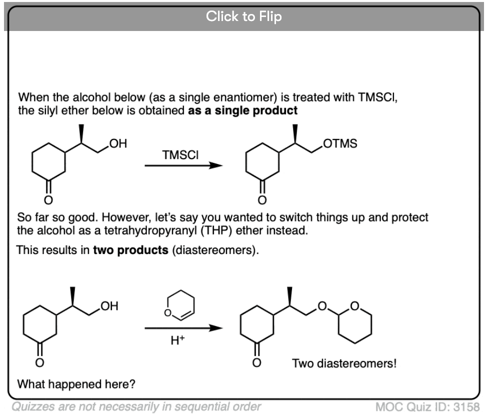 This post barely scratches the surface of protecting groups for alcohols. Protecting groups are used for alcohols in a variety of different situations, far beyond the SN2 examples we covered here. For instance, when we talk about Grignard reagents, we’ll see that they can’t be formed in the presence of alcohols, so we have to protect them. Another example might be if you wanted to selectively oxidize one of two different alcohols in a molecule. We can add more posts on this topic as we go along.