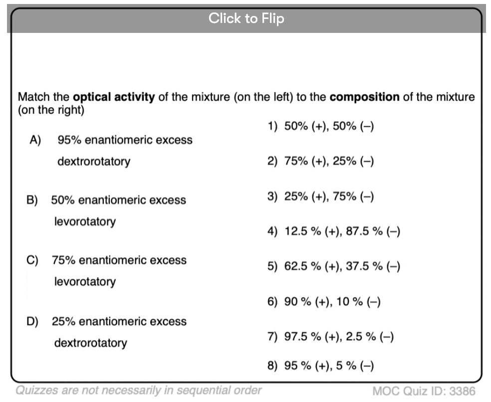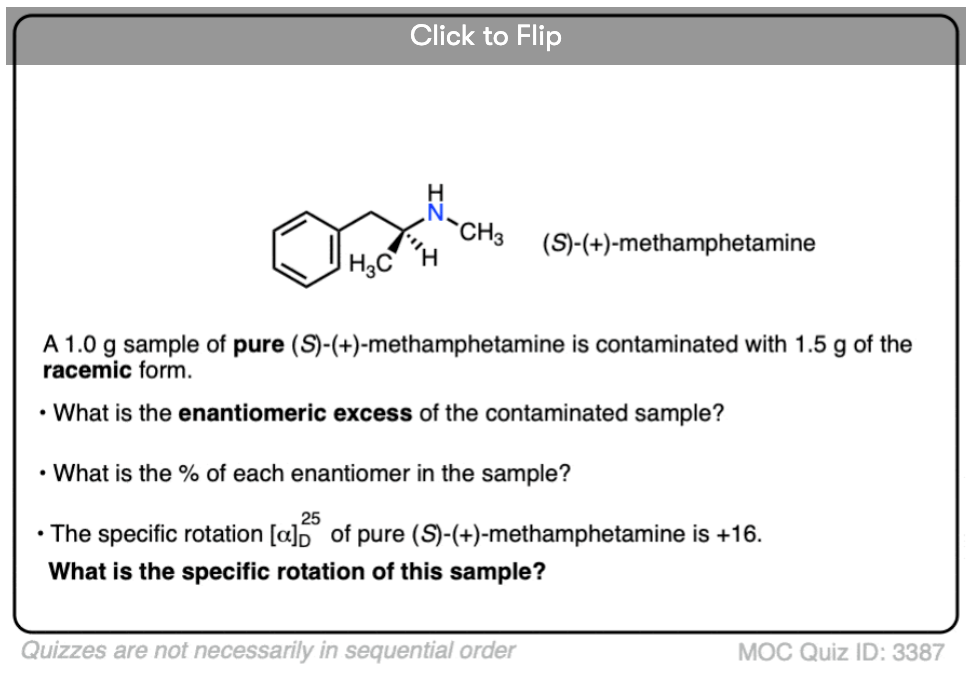 This post briefly covered some of the main details of optical rotation and specific rotation. In the next post, we’ll explore the relationship between specific rotation and a concept called “enantiomeric excess”.