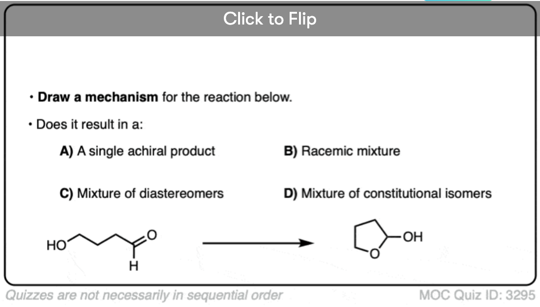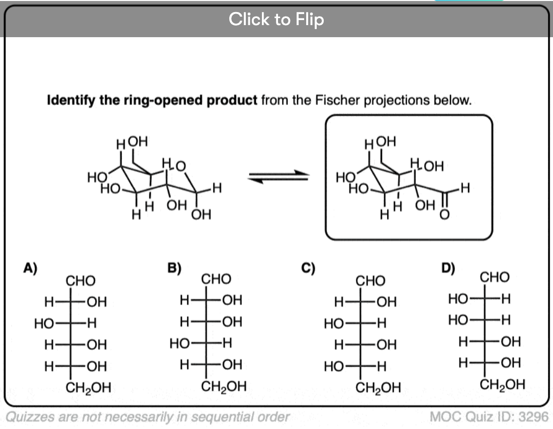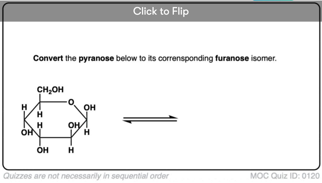 We’ve seen five separate isomers so far: the straight chain form, the pyranose form (alpha and beta), and the furanose form (alpha and beta).