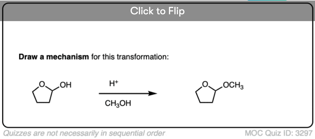 Similarly, aldehydes can react with alcohols to form hemiacetals. Like hydrate formation, hemiacetal formation is an equilibrium and the equilibrium tends to favor the starting aldehyde. [If you heat with acid, excess alcohol and sequester the water that forms, it forms an acetal ; this is not in equilibrium with the hemiacetal, which is why acetals are a great protecting group for aldehydes/ketones].
