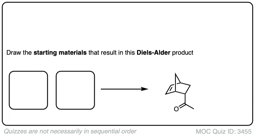 In the next post we’ll explore the rules for stereochemistry in the Diels-Alder by examining examples such as the following (below). See if you can discern the key pattern!