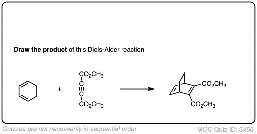 Wait – can acetylenes be used in the Diels-Alder? Yes, especially if they are attached to electron withdrawing groups. Just treat them the way you’d treat a “normal” dienophile; break a C-C pi bond and leave the other one intact.