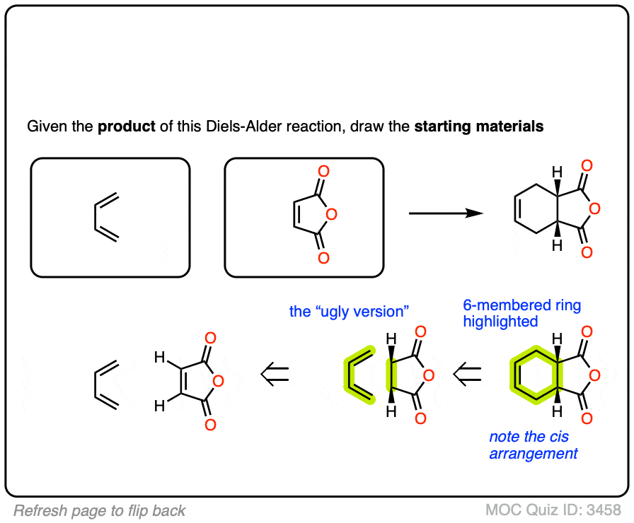 Last post in this series we introduced the Diels-Alder reaction. We saw that no matter how complex the diene or dienophile, or no matter what substituents are attached, the pattern of bonds that form and break are always the same.