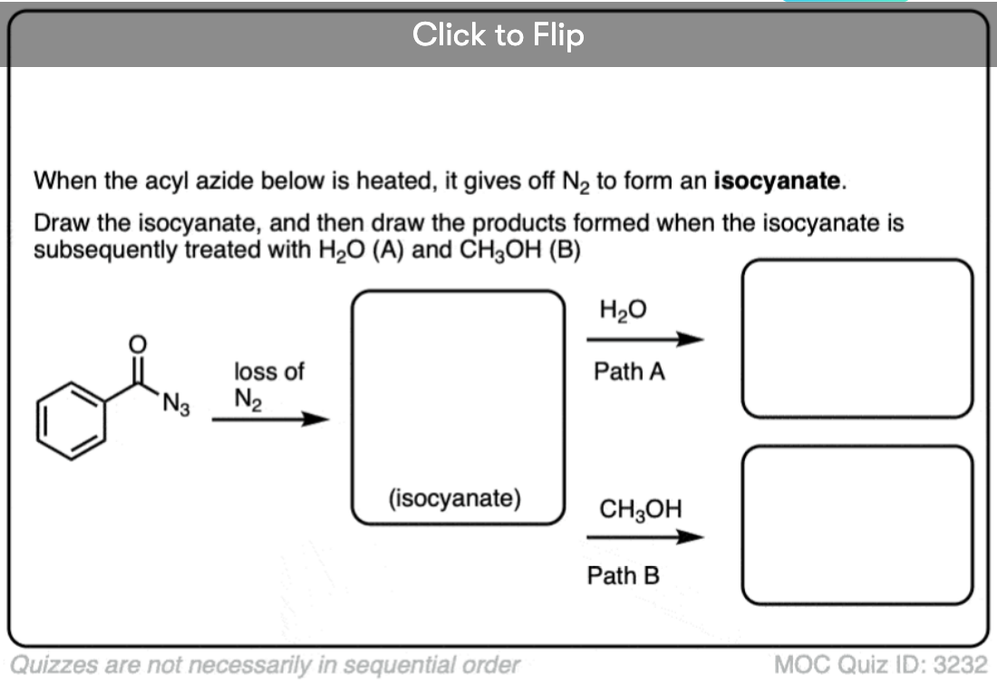 - The Curtius rearrangement occurs with an acyl azide.