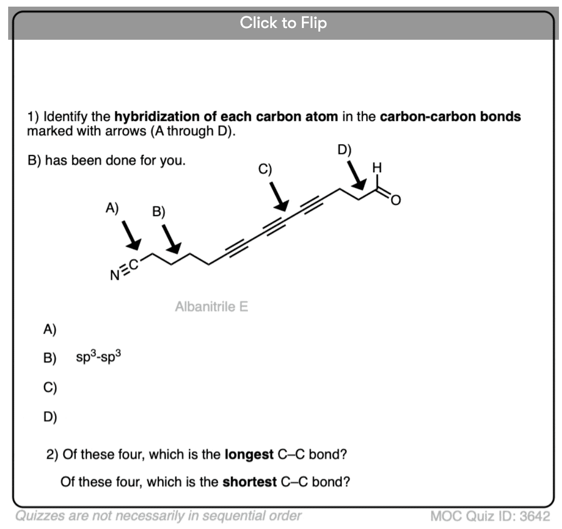 In part 7 you asked which product was most stable but your discussion dealt with the reaction and every point you made was sensible. The sp3 orbital in the (B) reaction would lend itself to a more favorable reaction in comparison to the sp orbital in the (A) reaction. My problem is, and maybe I’m overthinking this from a lot of experience with phenyl ethynyl endcaps and fluorinated cyclic olefins, wouldn’t the electron rich triple bond tend to lend electrons across the molecule to de-localize the carbocation thus making the methylacetylene product more stable. Victor made a good point about how messing with triple bonds can lead to quick reactions/polymerizations. I know the answer wouldn’t be as troublesome with just acetylene but in my addled mind the methyl group muddies up the result. Or I’m throwing arrows around willy-nilly like I did decades ago in school. Also, this site is amazing.