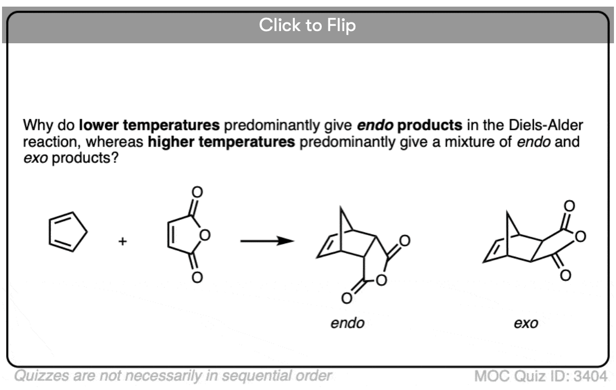 As we’ve seen, the Diels-Alder can form both endo and exo diastereomers [See article: Exo and Endo Products In The Diels-Alder – How To Tell them Apart ]. (only the endo is shown here).