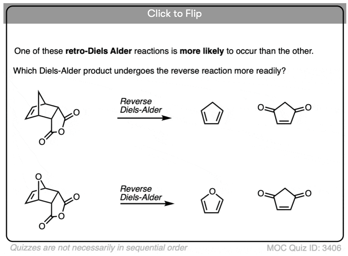 Here’s the cool thing (and – shhhh! – the secret behind that “One Weird Trick” ). At high enough temperatures, the Diels-Alder reaction is reversible.