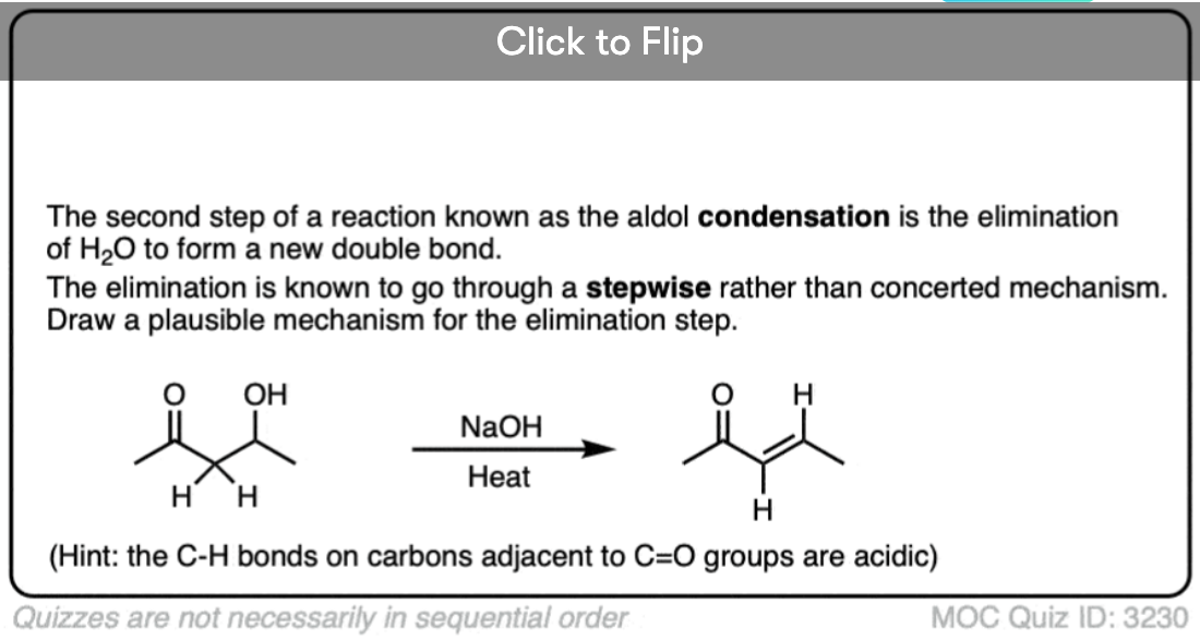 - It does occasionally come up in introductory organic chemistry courses, particularly in the mechanism of the aldol condensation, aryne formation, and elimination of alkenyl halides to give alkynes.