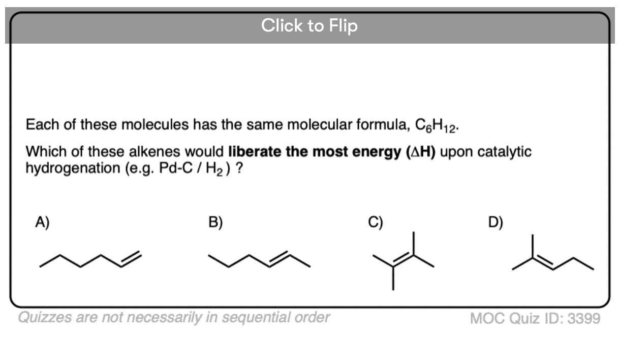 In this post we explore how increasing substitution at carbon increases the stability of alkenes, as well as the effects of conjugation and strain.