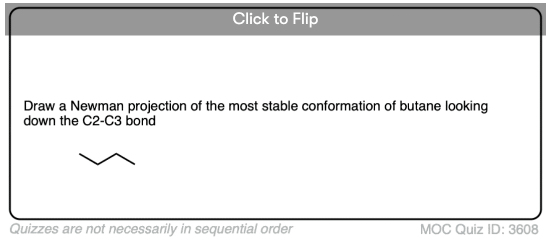Model kit time. Here is a gif showing rotation about the C2-C3 bond, interconverting the C2-C3 “staggered” conformation to a C2-C3 “eclipsed” conformation.