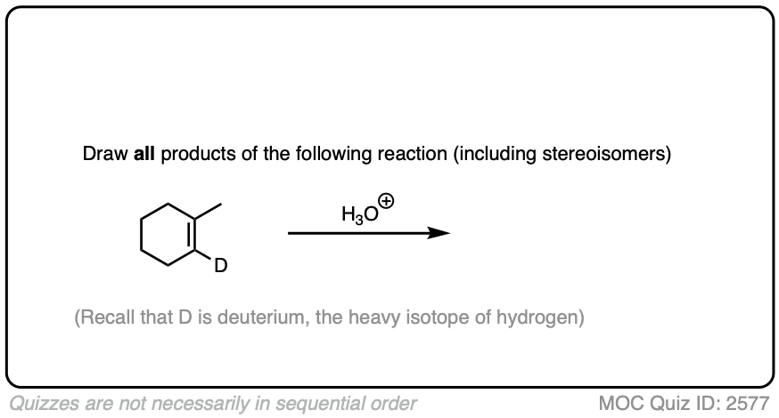 See if you can draw the products of the following reaction involving a deuterated alkene.