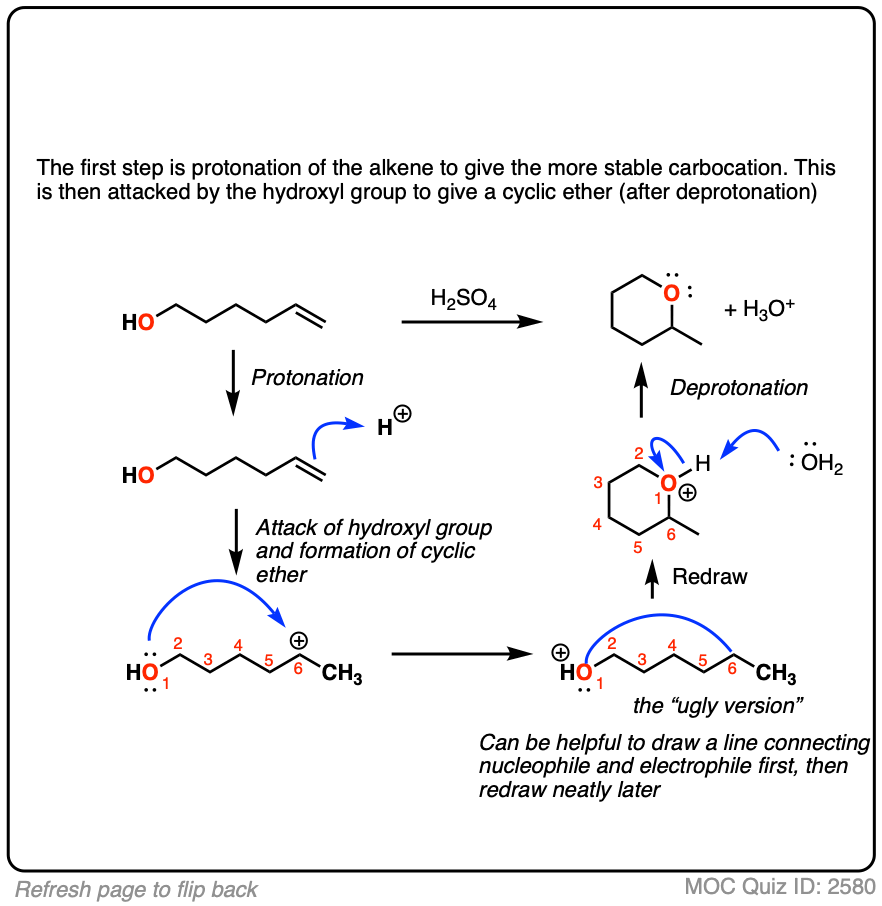 If an alcohol and an alkene are present on the same molecule, then treatment with acid can result in the intramolecular formation of an ether, resulting in a new ring.