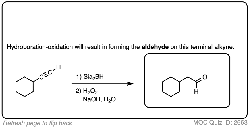 Summary-hydroboration oxidation of alkynes to give aldehydes and ketones