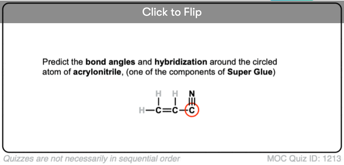 If you’re shown the chemical formula for a molecule, can you predict the geometry / bond angles at specific atoms? If you can determine hybridization, this should be straightforward.