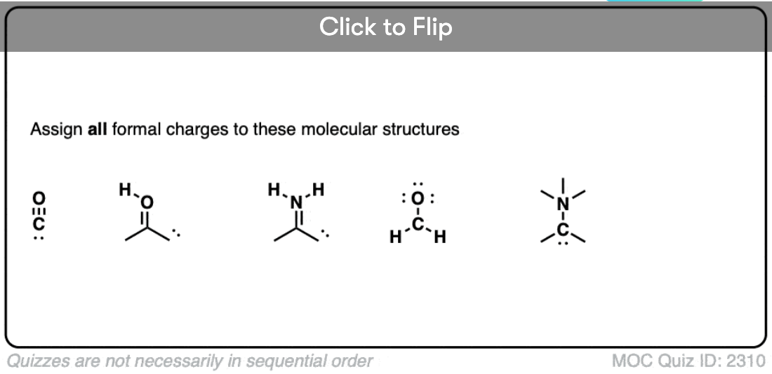 Formal charge calculations are a staple. If you’re given the structure of a simple molecule, expect to be asked to quickly be able to calculate the formal charge of different atoms.