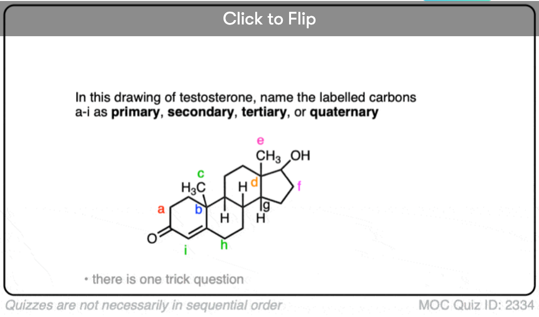 Identifying the longest chain in an alkane and properly assigning substituents and naming locants is important. So is being able to determine whether different carbons are primary, secondary or tertiary. This latter skill is absolutely crucial for later success in the course!