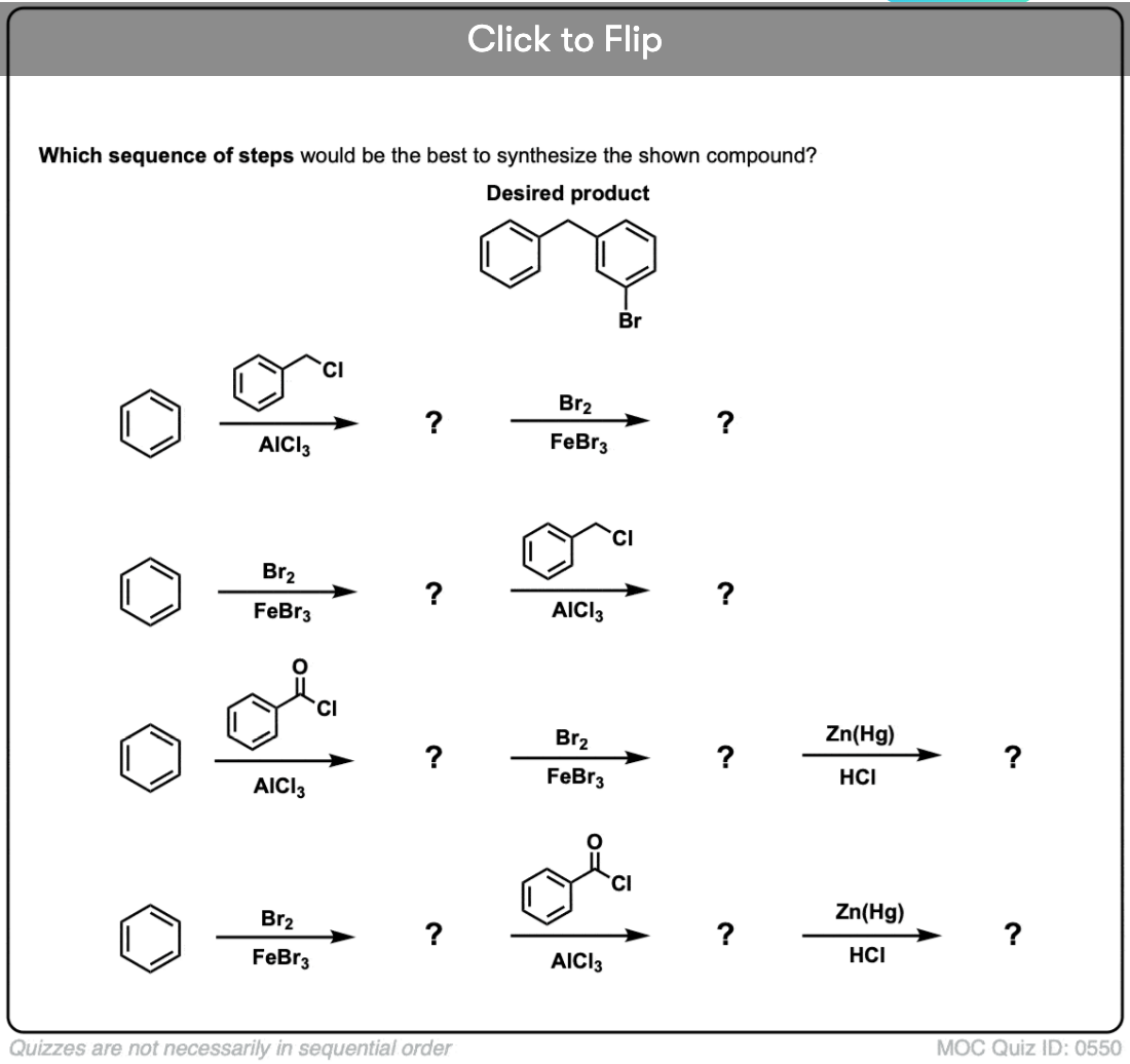 ***Get access to about 10 more Aromatic Reactions + Synthesis quiz questions below by joining the MOC Membership ***