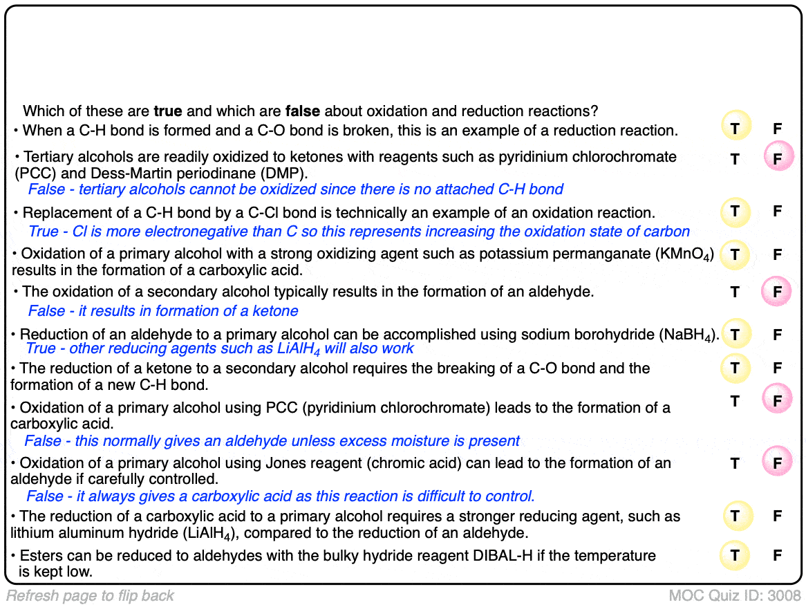 These practice questions test your ability to identify oxidations and reductions, predict products from oxidation and reduction reactions, and finally to draw their mechanisms.