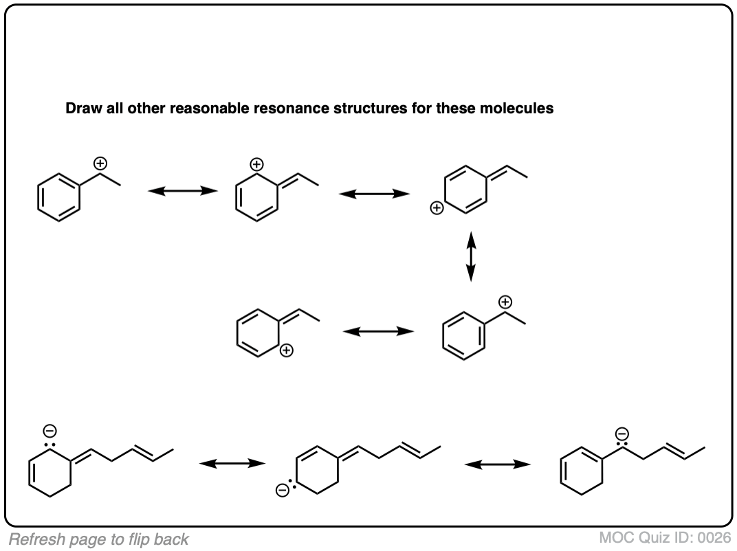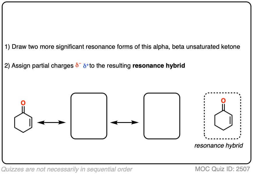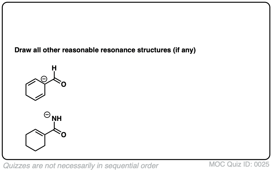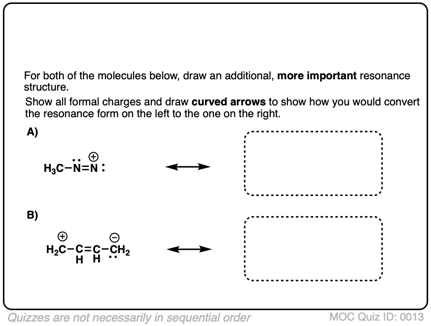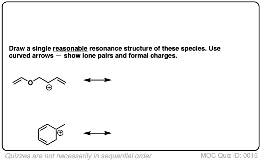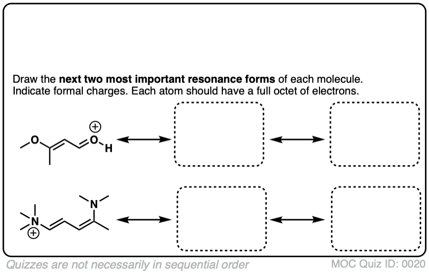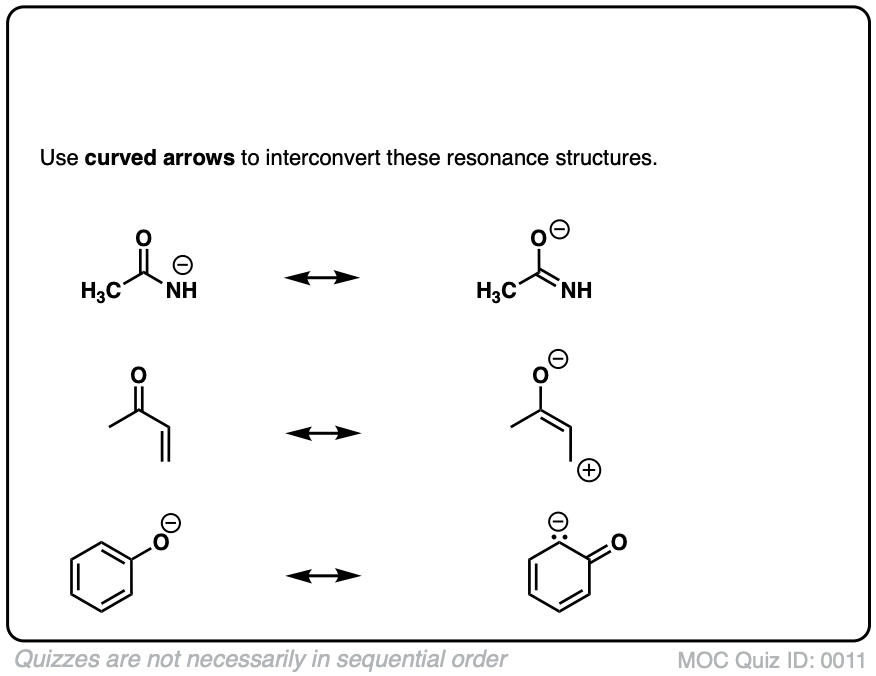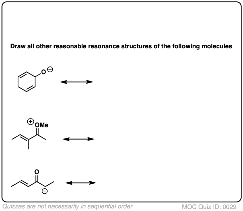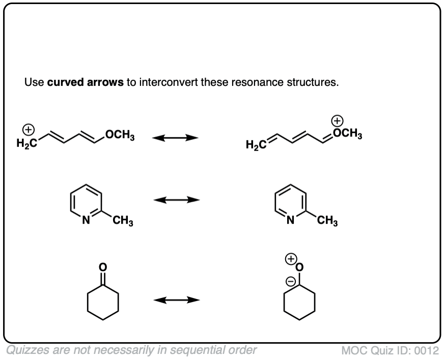 These questions cover all aspects of resonance in organic chemistry, from identifying resonance forms, understanding partial charges, ranking the relative importance of resonance forms, and drawing curved arrows to interconvert resonance forms.