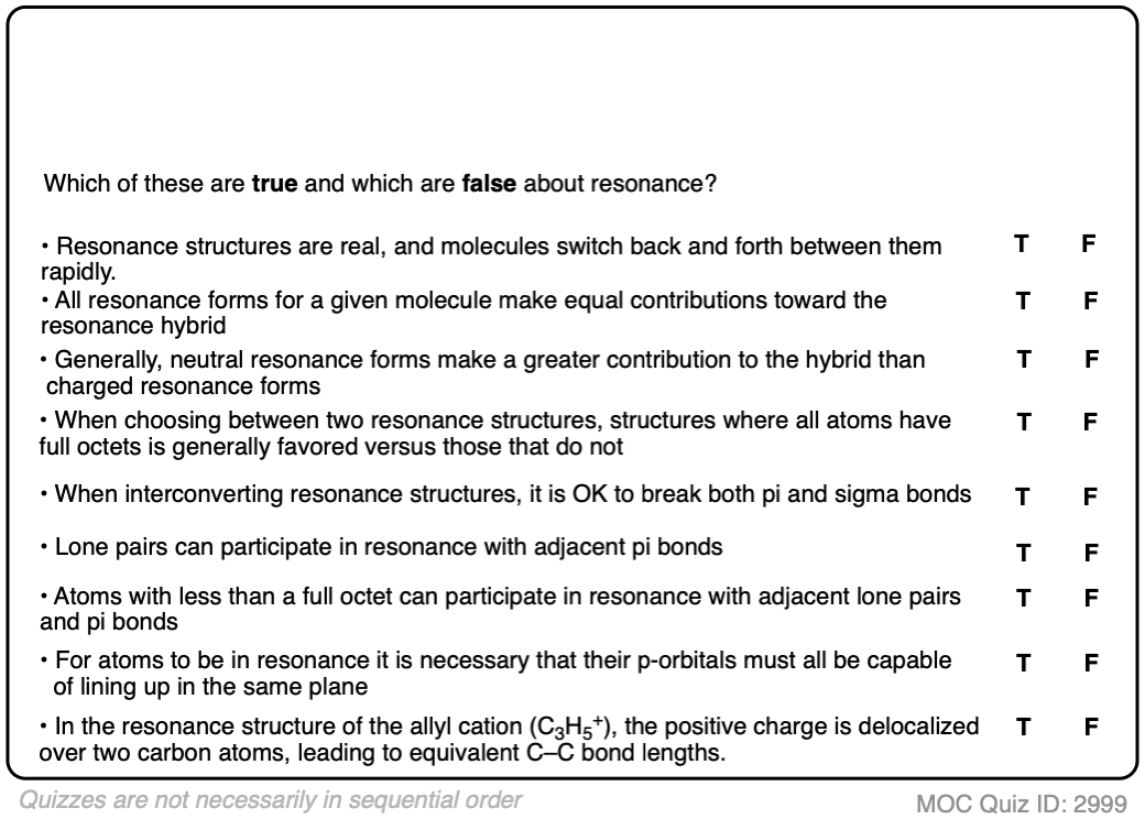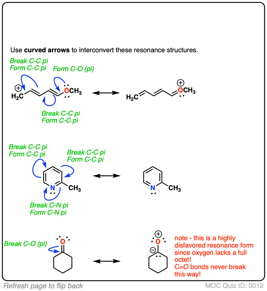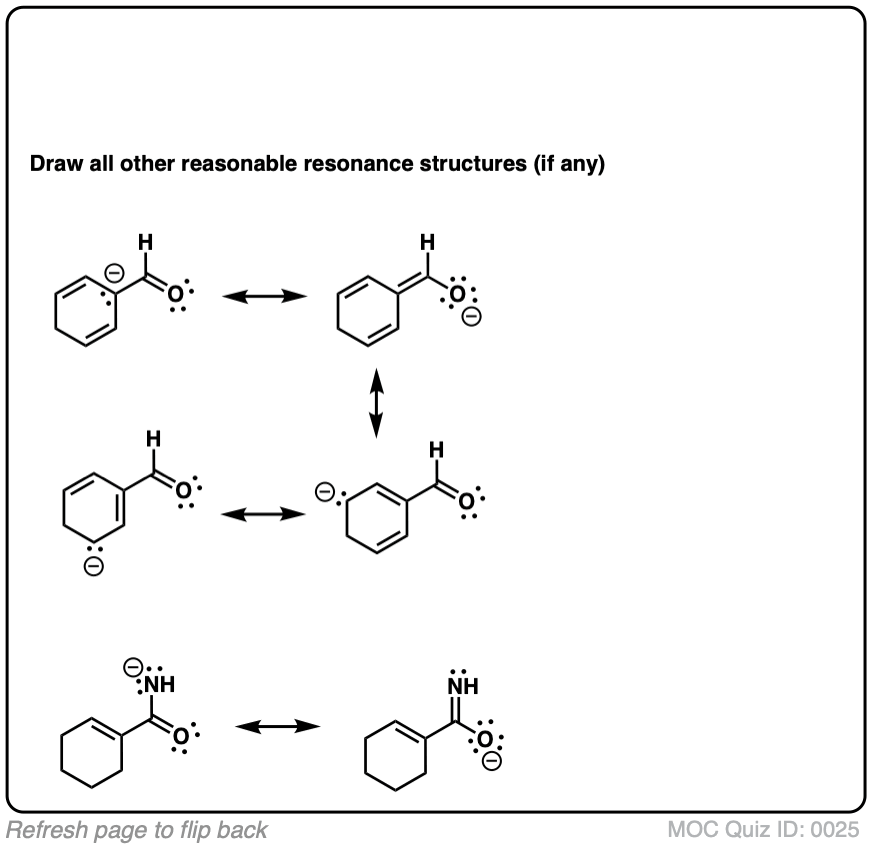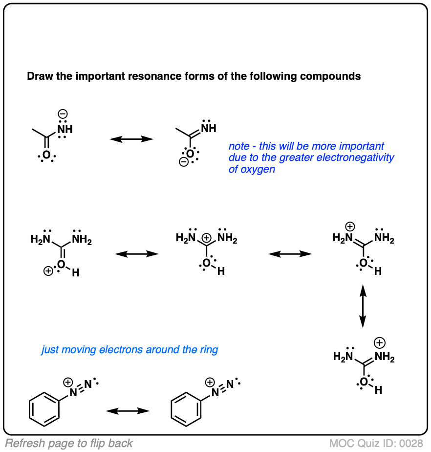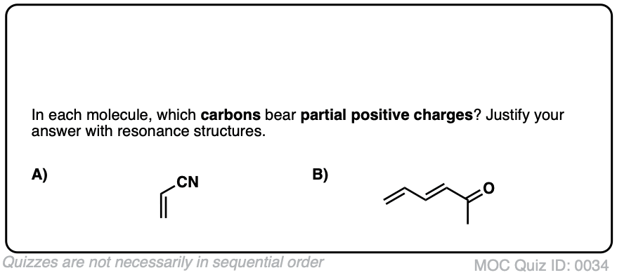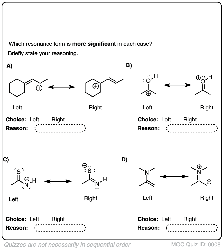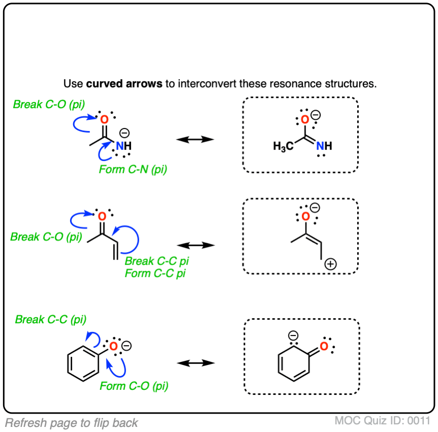 These questions cover all aspects of resonance in organic chemistry, from identifying resonance forms, understanding partial charges, ranking the relative importance of resonance forms, and drawing curved arrows to interconvert resonance forms.