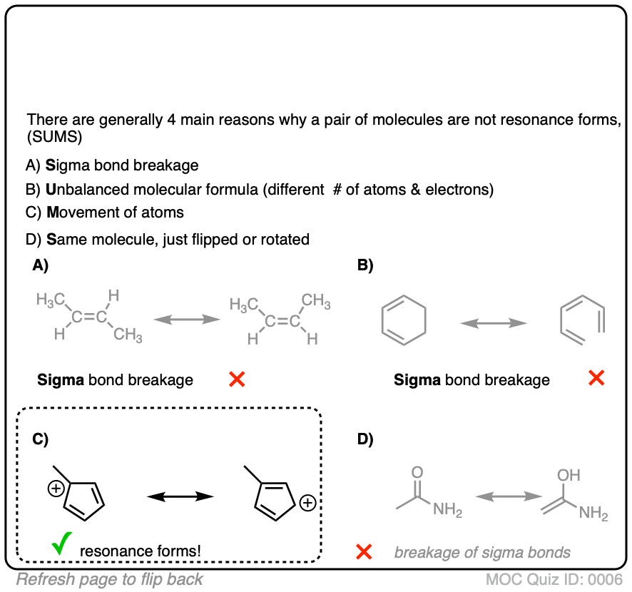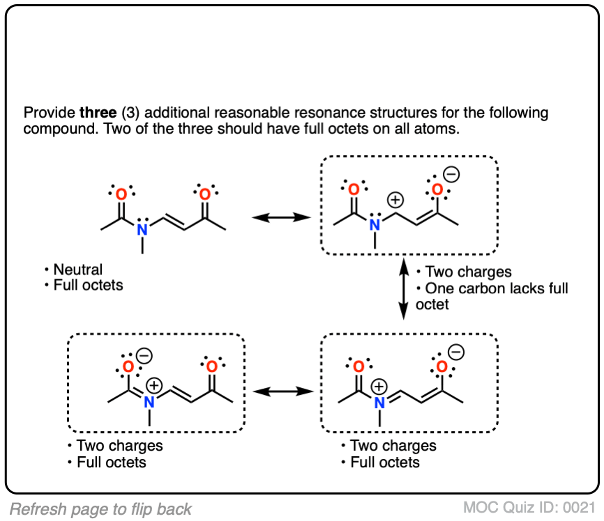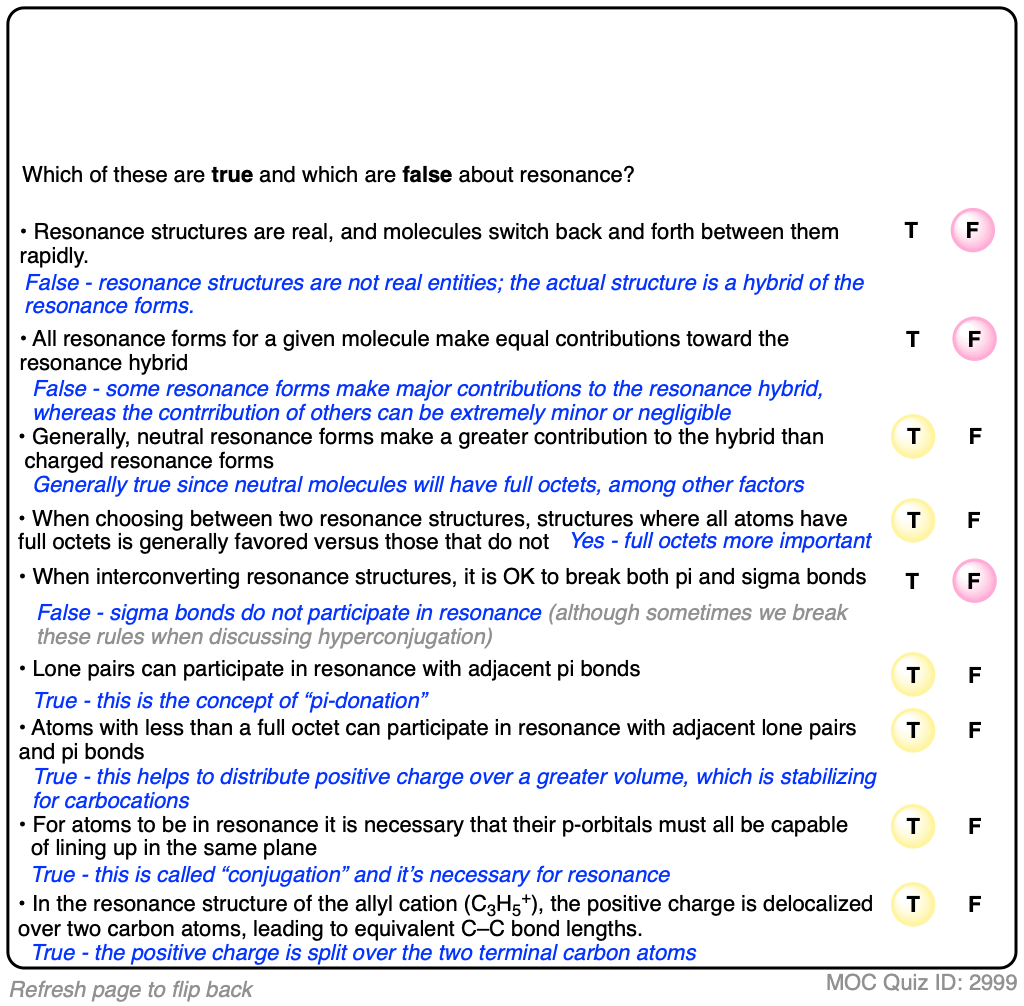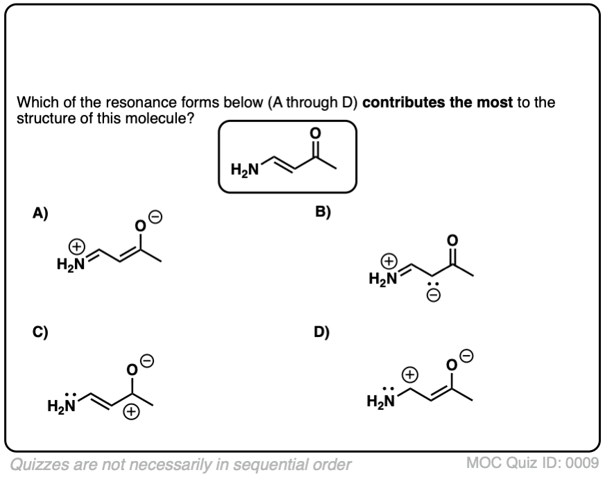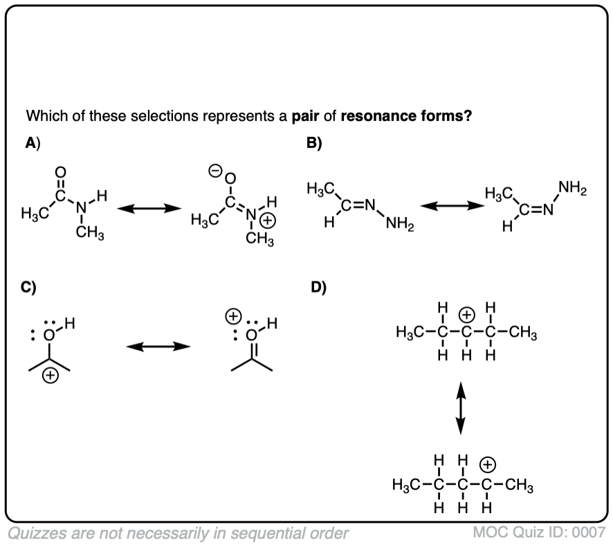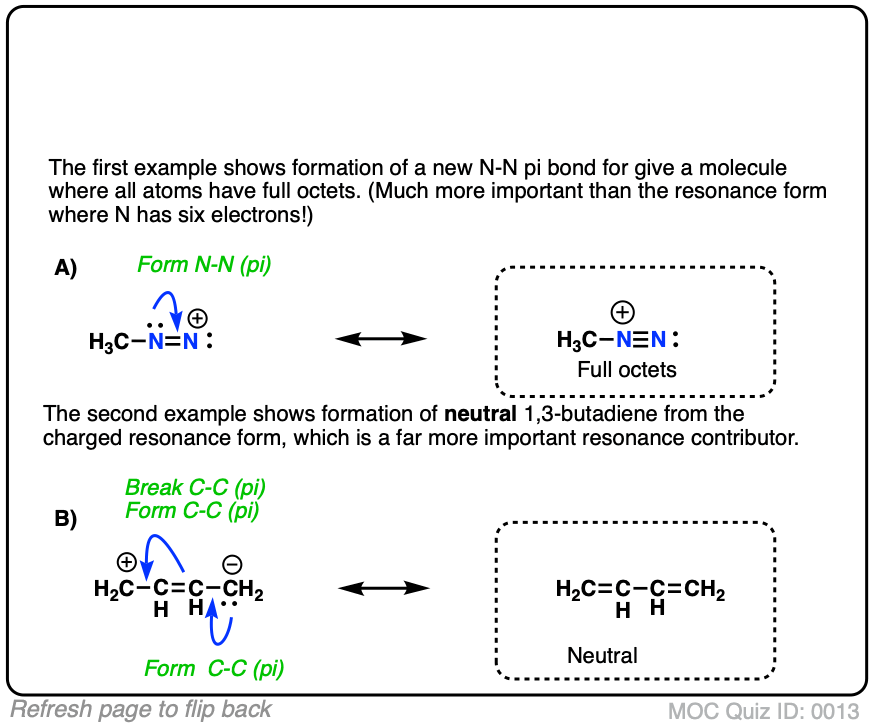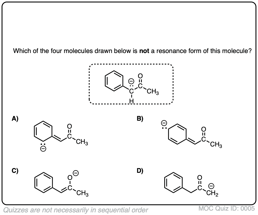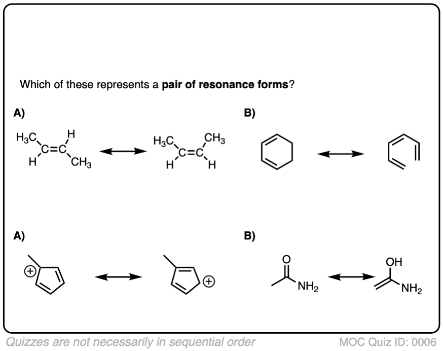 These questions cover all aspects of resonance in organic chemistry, from identifying resonance forms, understanding partial charges, ranking the relative importance of resonance forms, and drawing curved arrows to interconvert resonance forms.