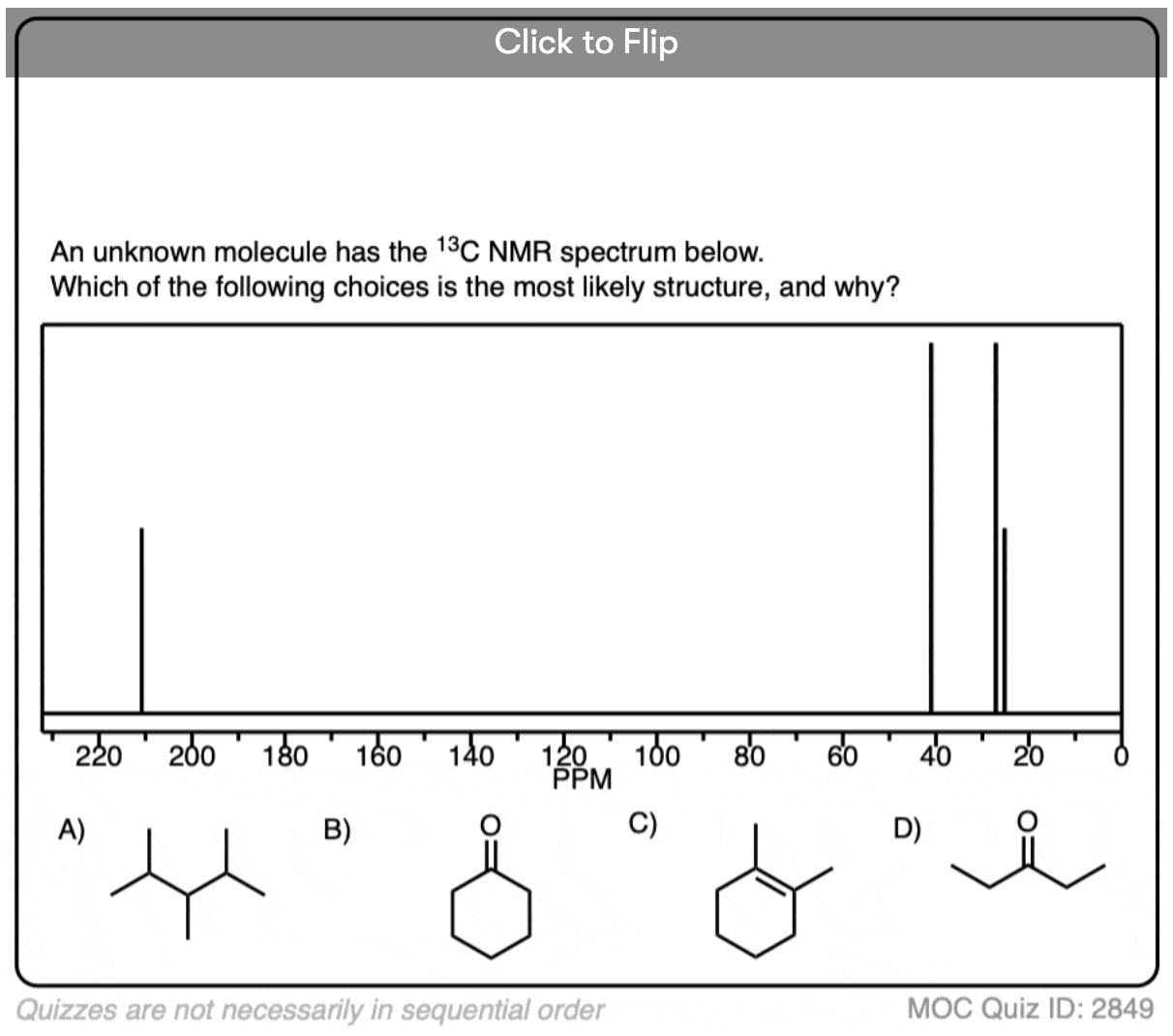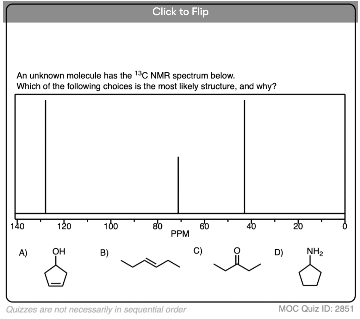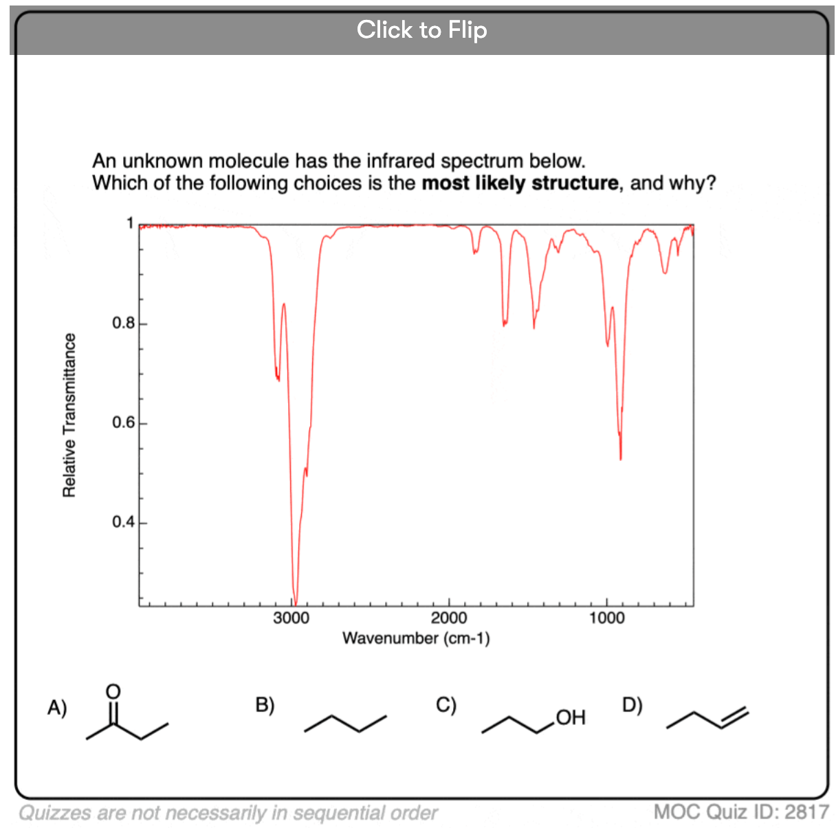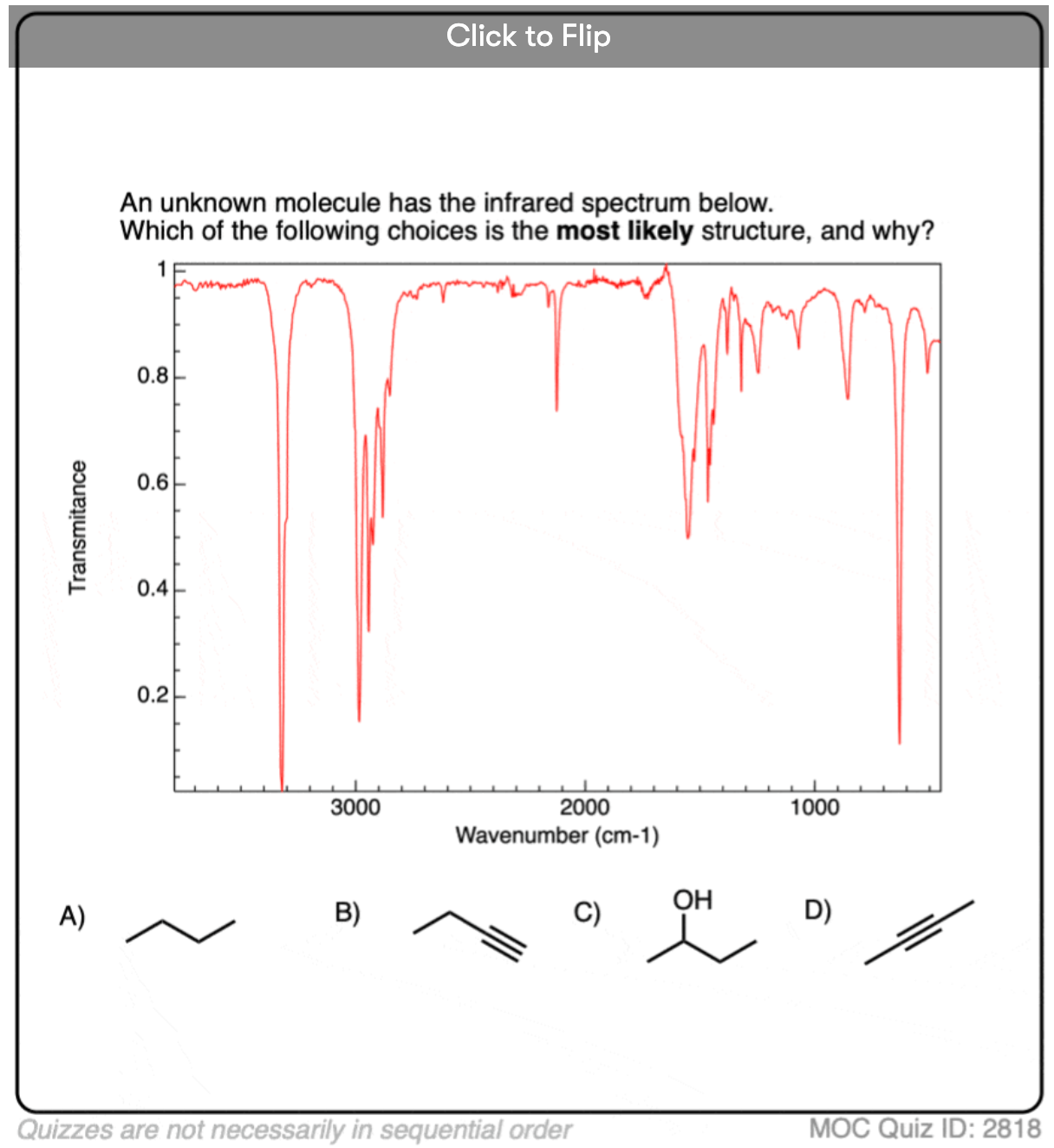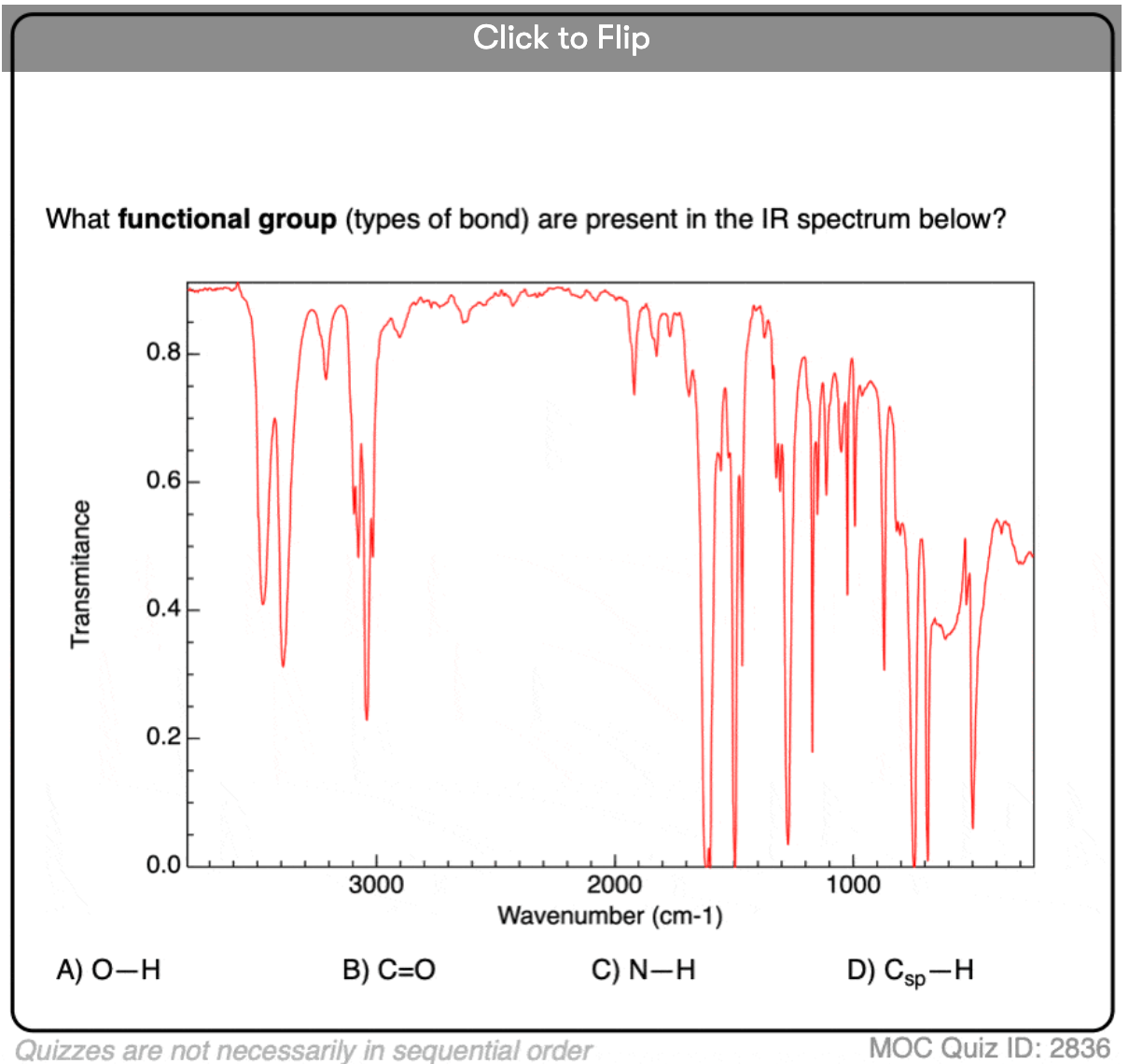 This page contains quizzes on spectroscopy topics, starting from the simplest – index of hydrogen deficiency – up to UV-Visible spectroscopy, IR spectroscopy, mass spectrometry (MS), and 13C and 1H NMR spectroscopy.
