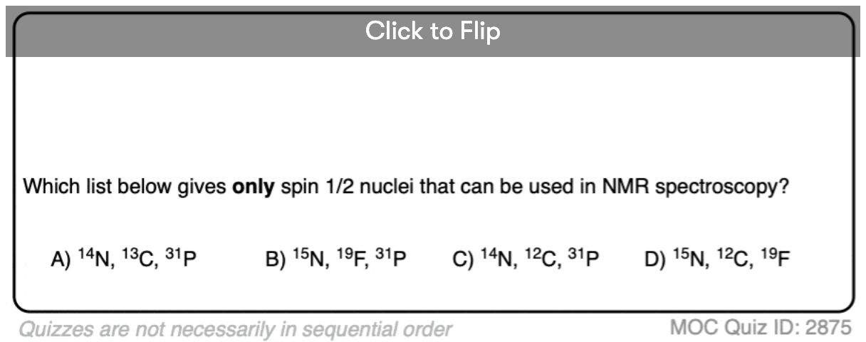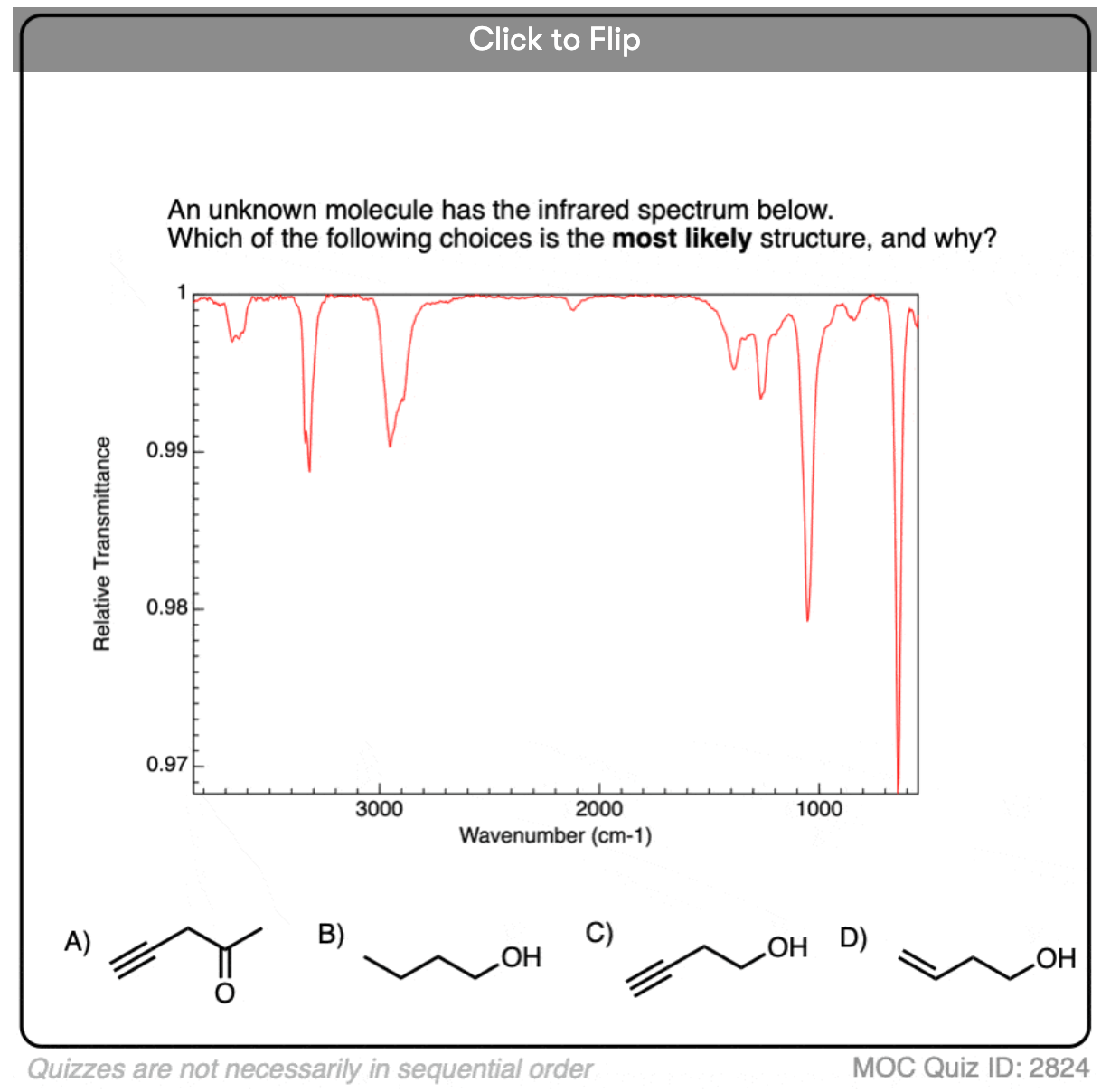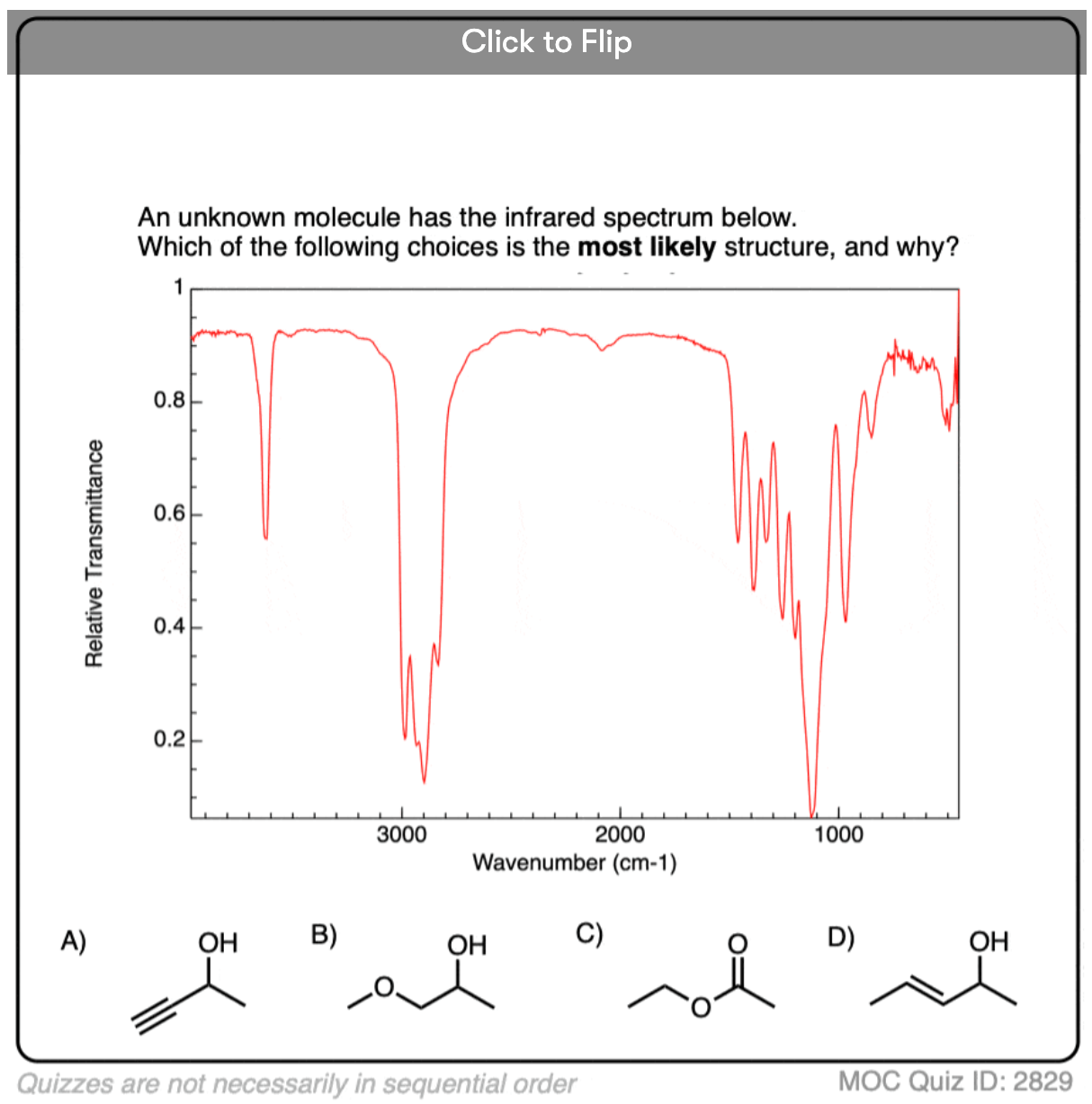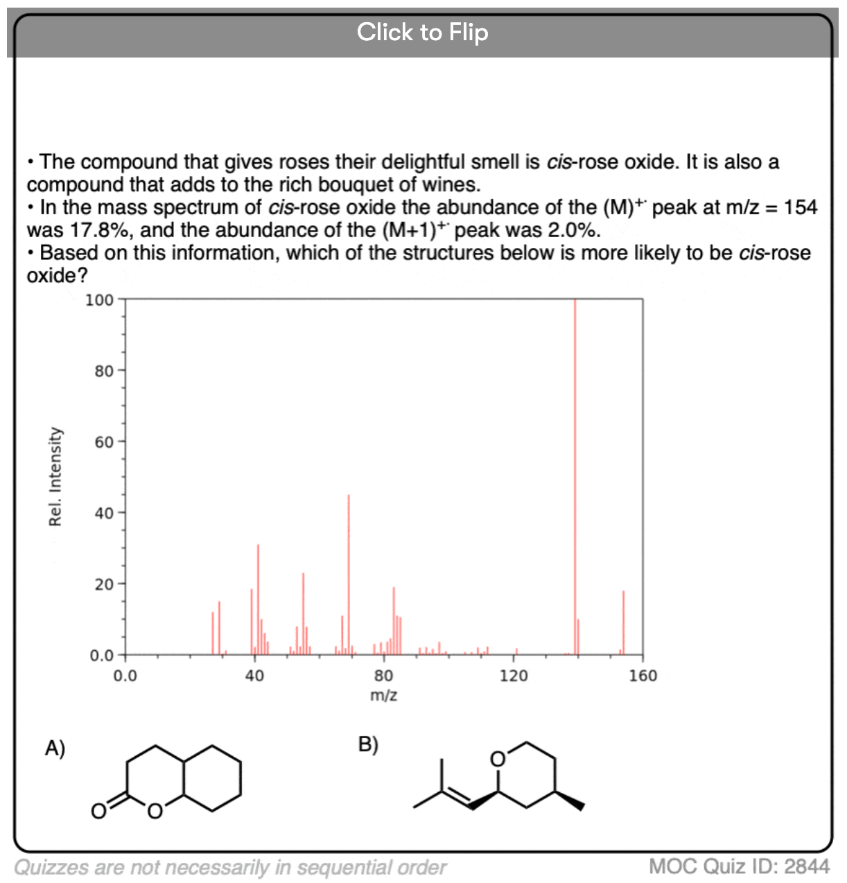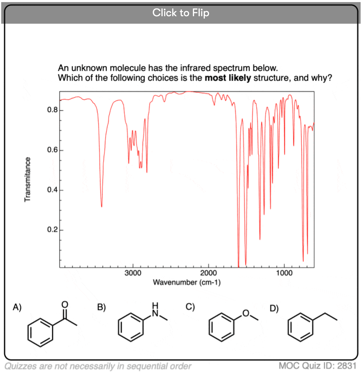 This page contains quizzes on spectroscopy topics, starting from the simplest – index of hydrogen deficiency – up to UV-Visible spectroscopy, IR spectroscopy, mass spectrometry (MS), and 13C and 1H NMR spectroscopy.