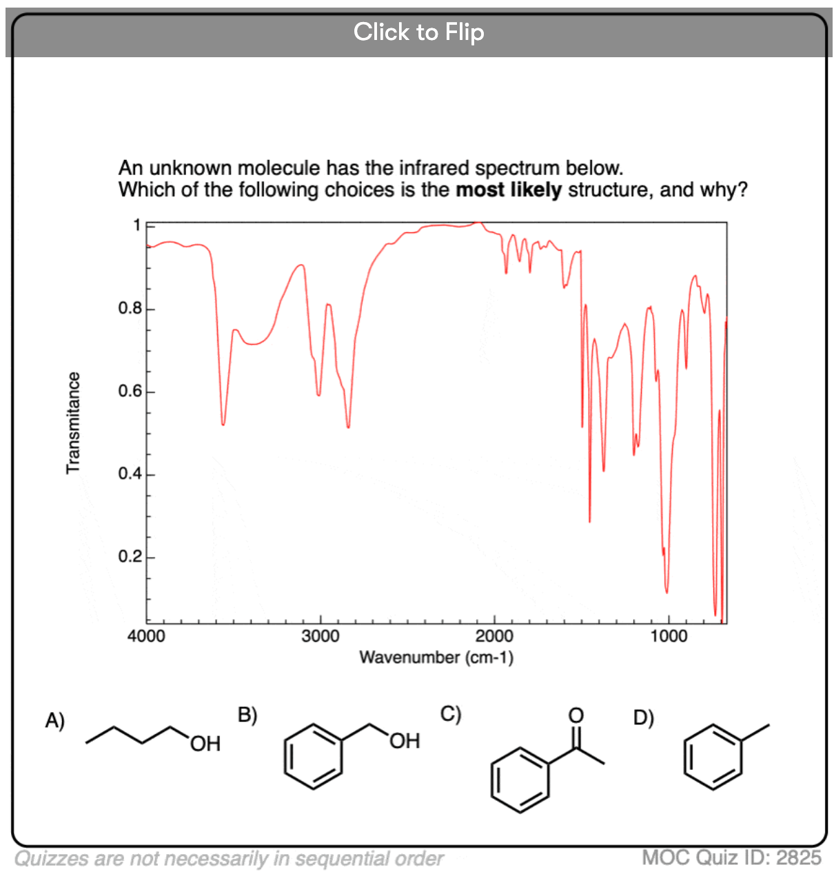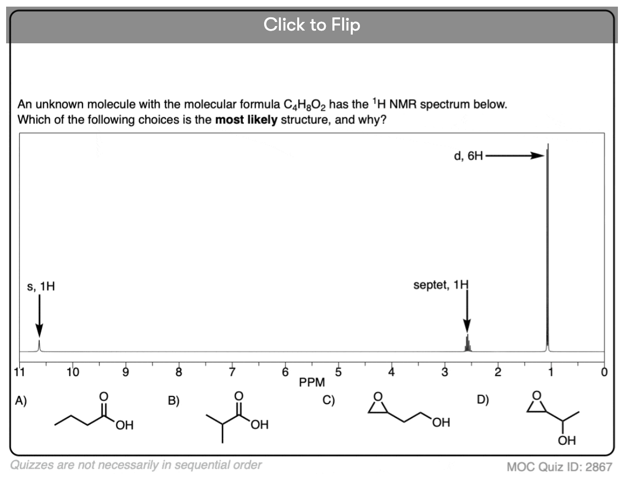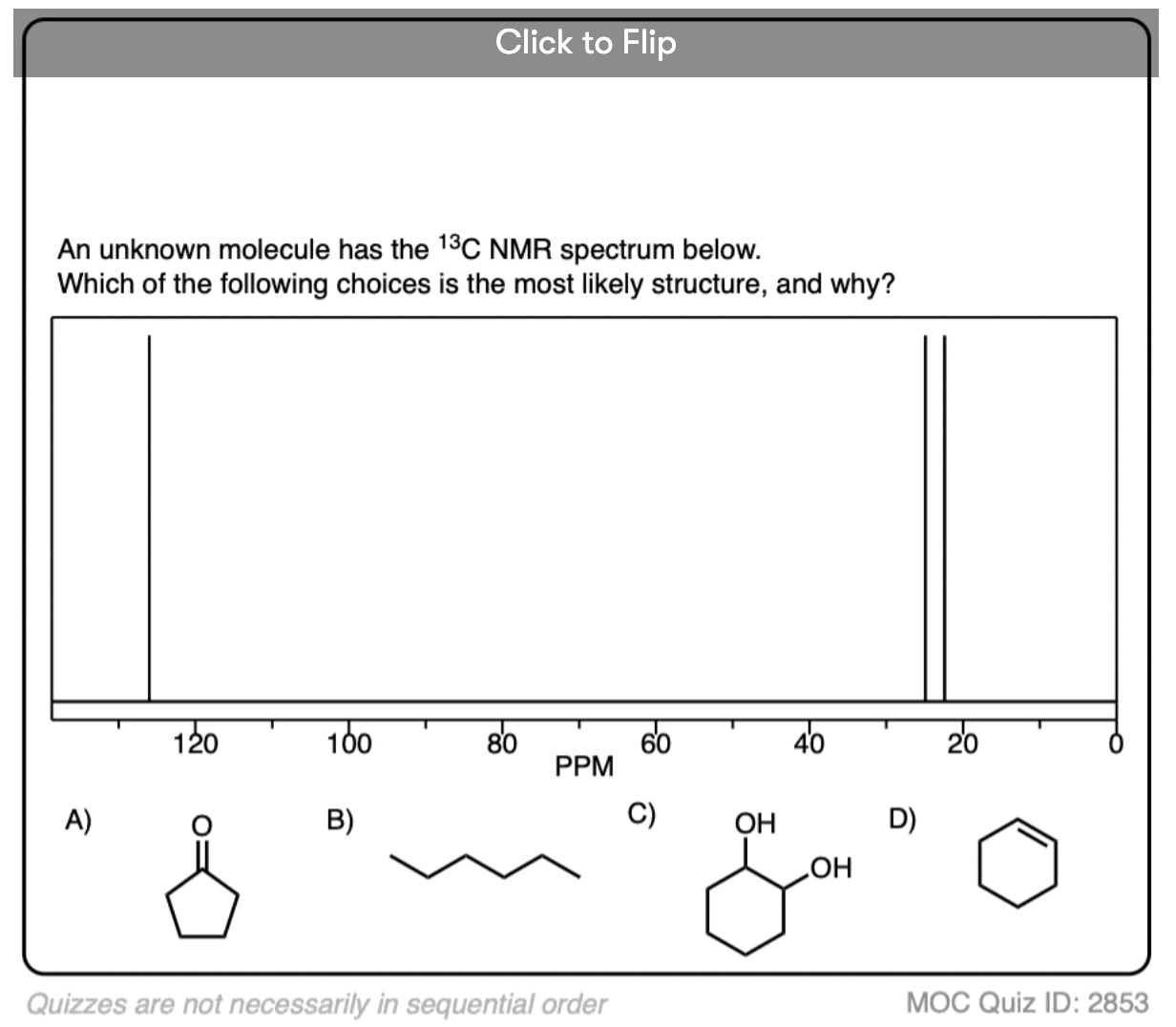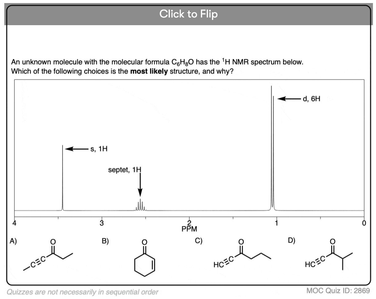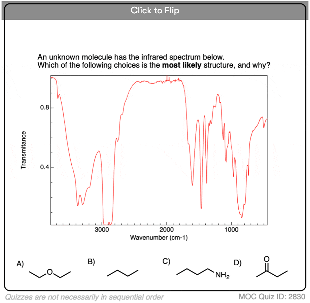 This page contains quizzes on spectroscopy topics, starting from the simplest – index of hydrogen deficiency – up to UV-Visible spectroscopy, IR spectroscopy, mass spectrometry (MS), and 13C and 1H NMR spectroscopy.
