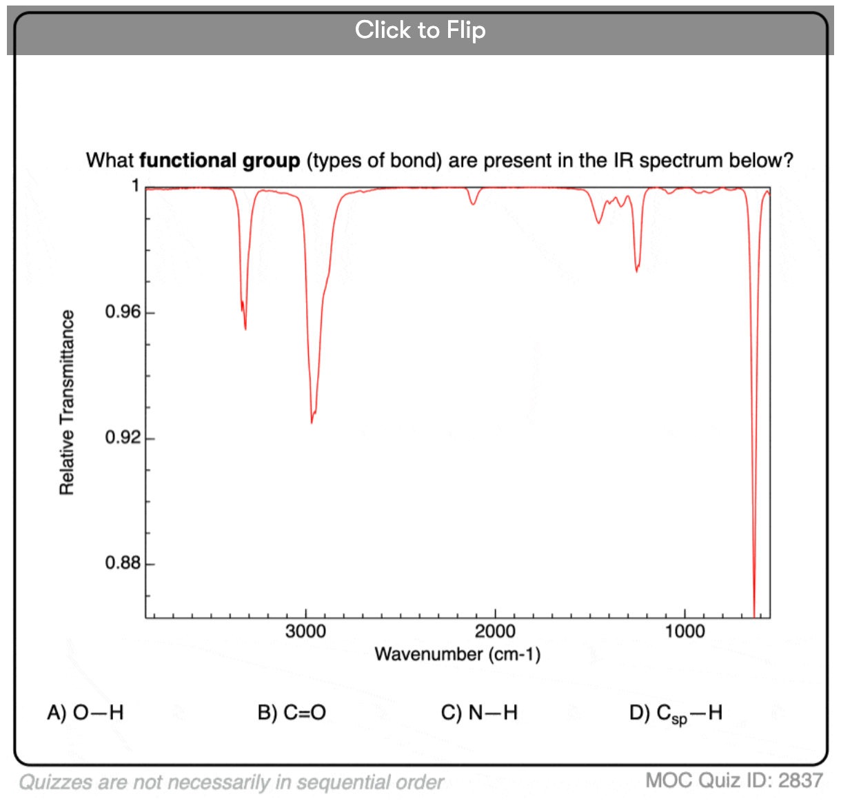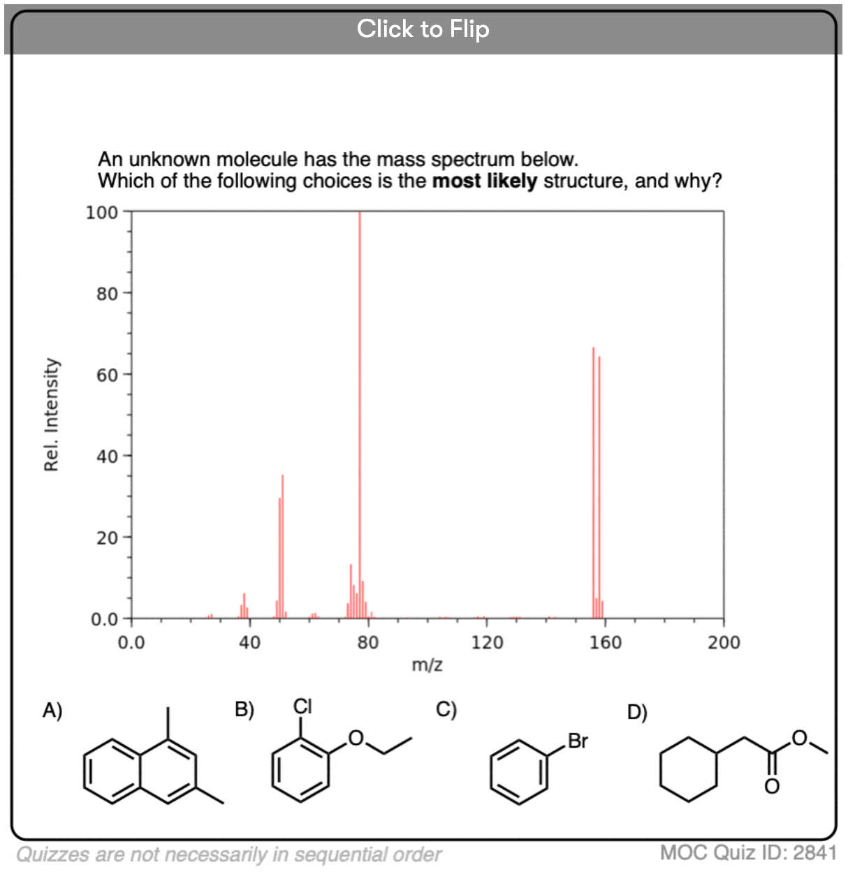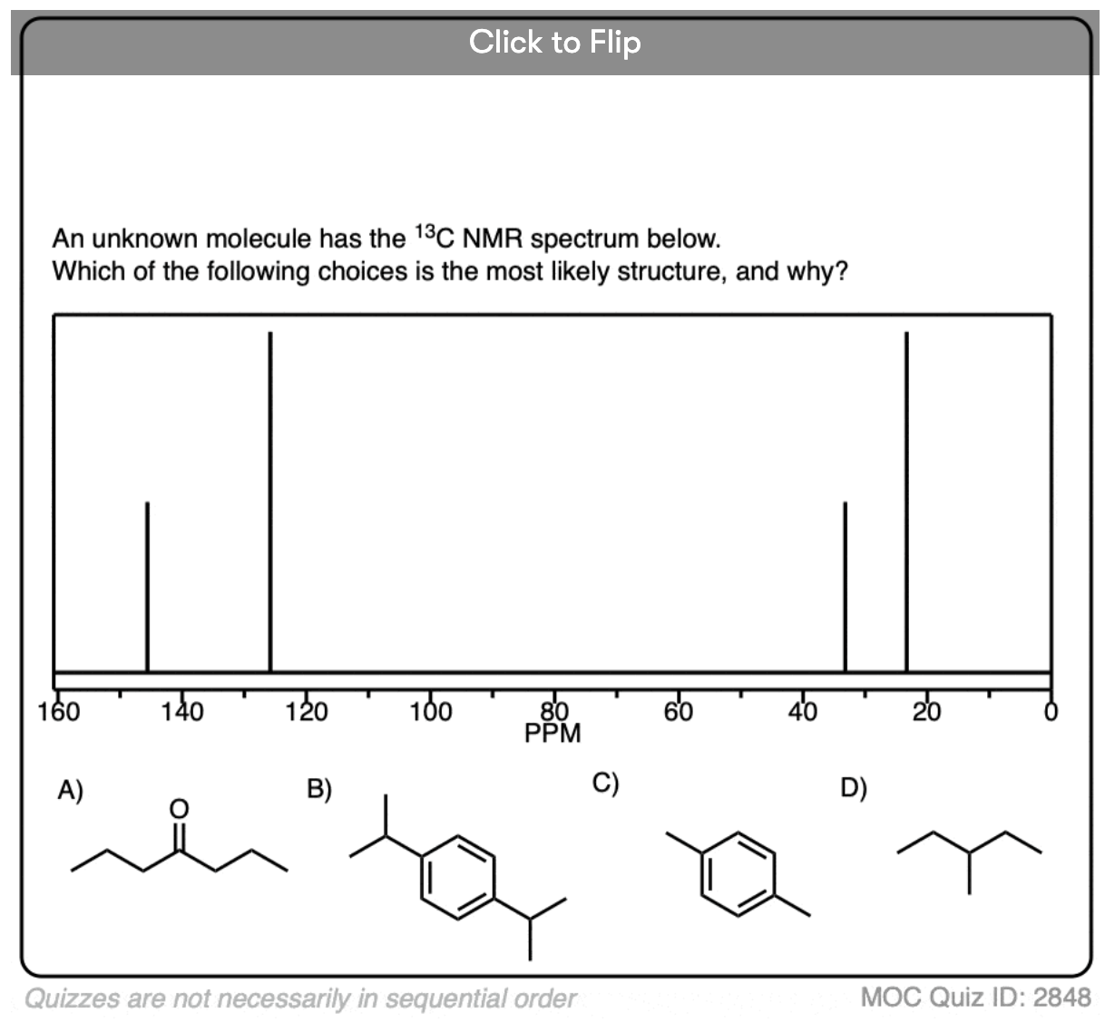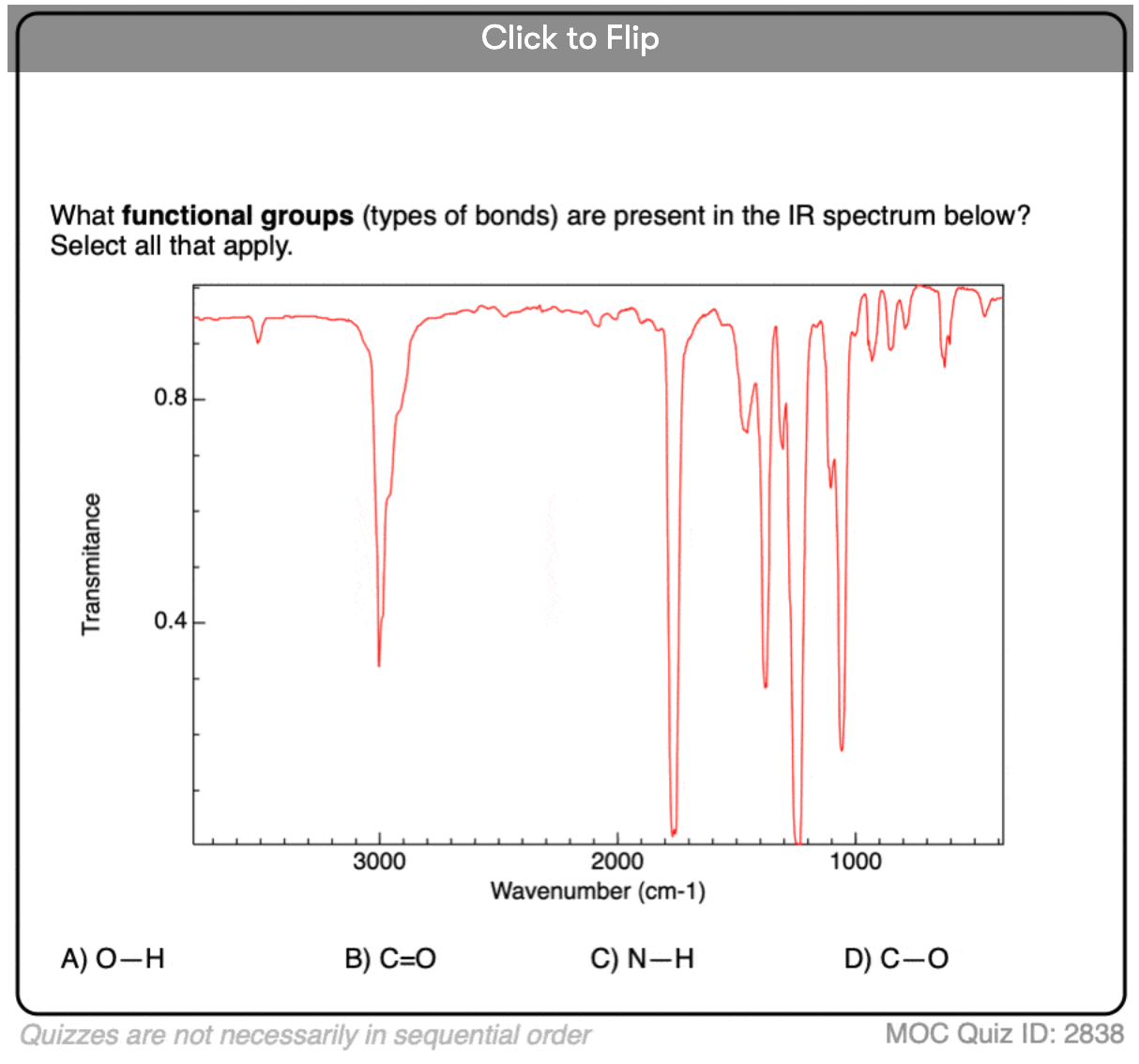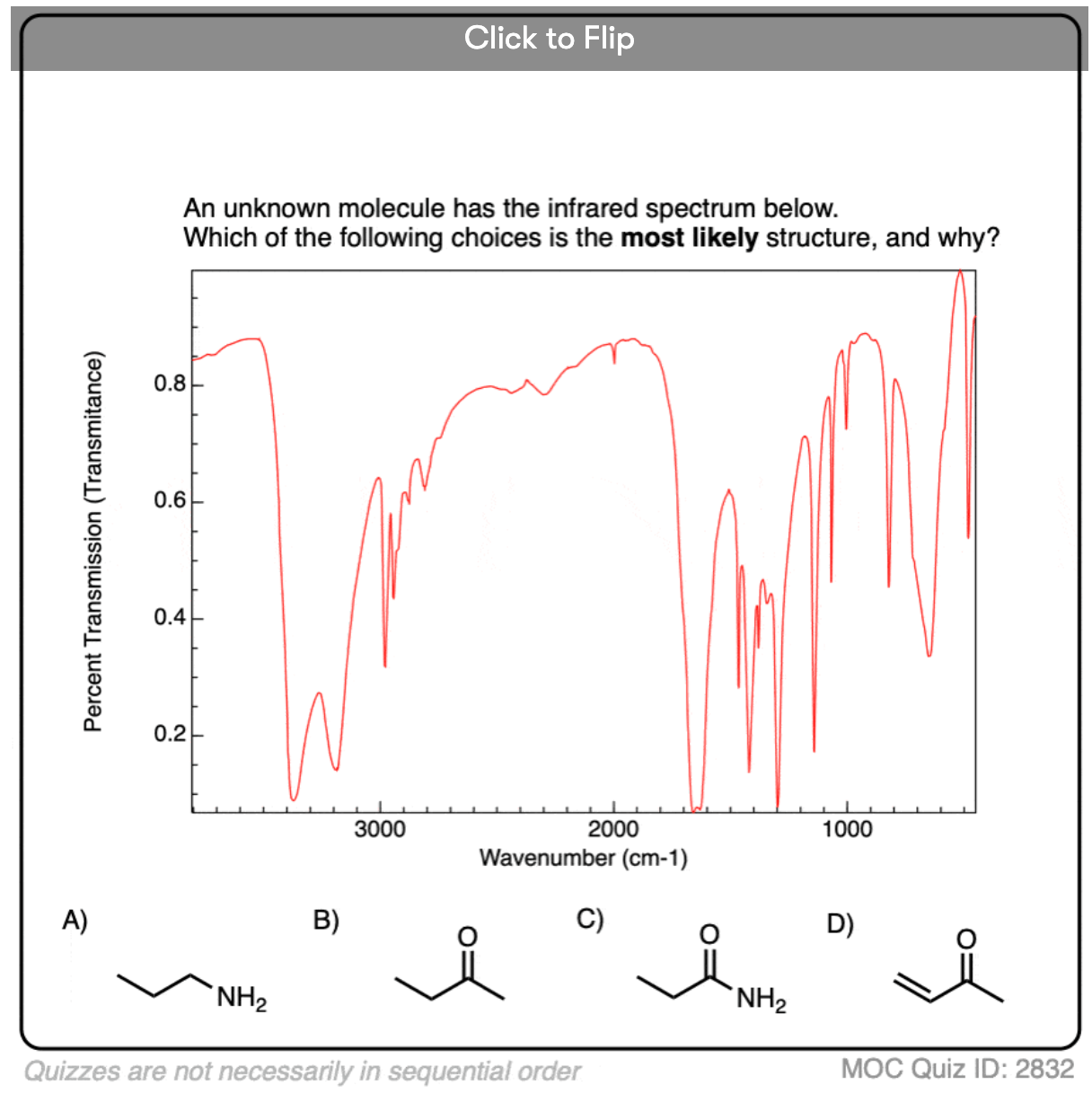 This page contains quizzes on spectroscopy topics, starting from the simplest – index of hydrogen deficiency – up to UV-Visible spectroscopy, IR spectroscopy, mass spectrometry (MS), and 13C and 1H NMR spectroscopy.