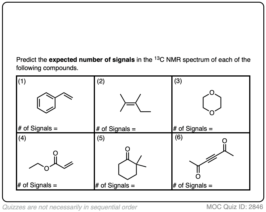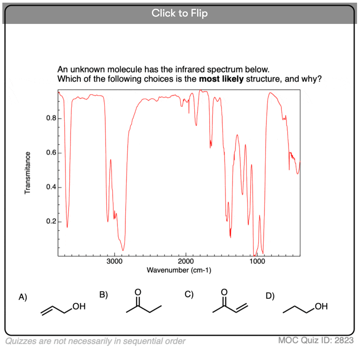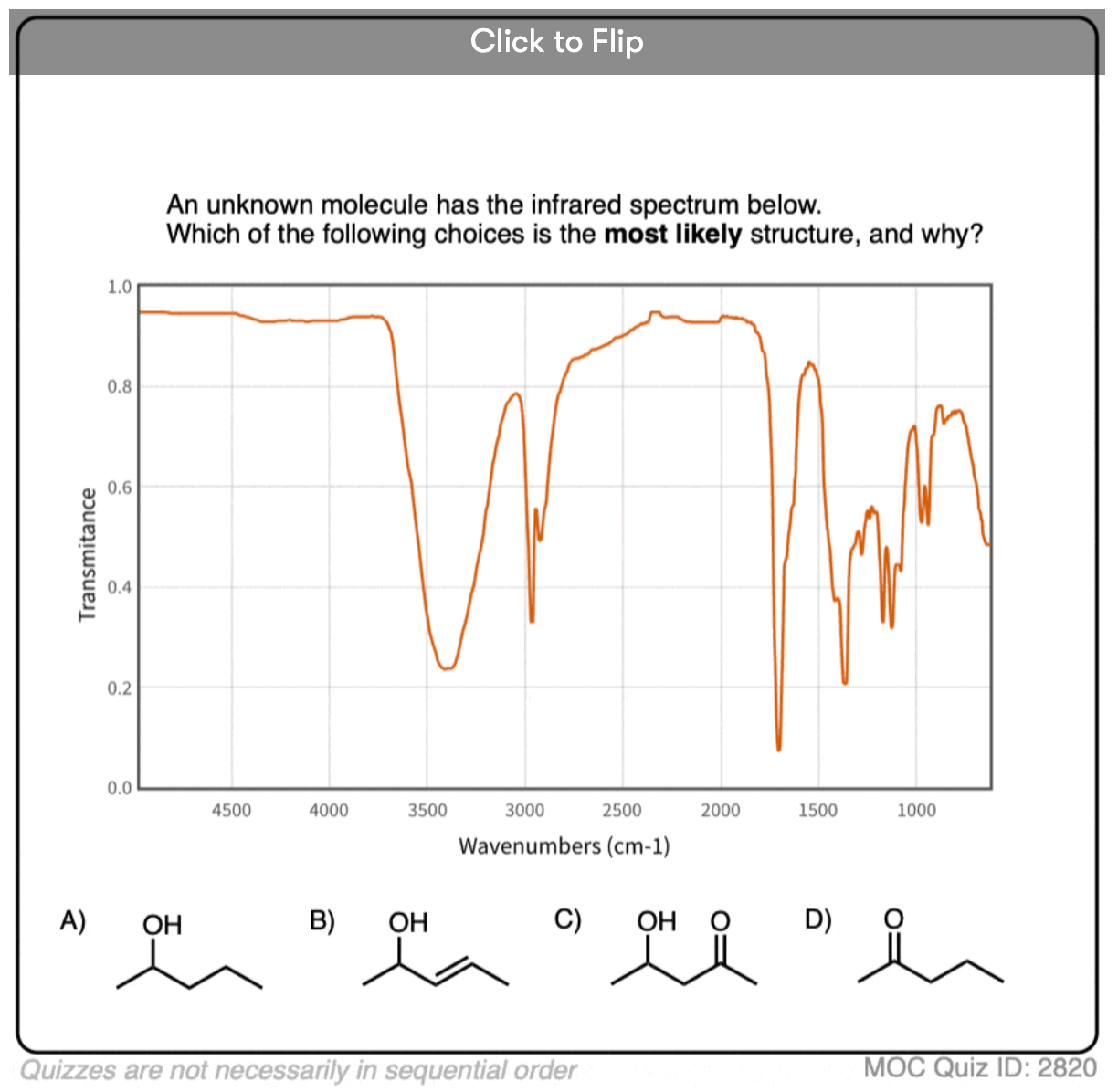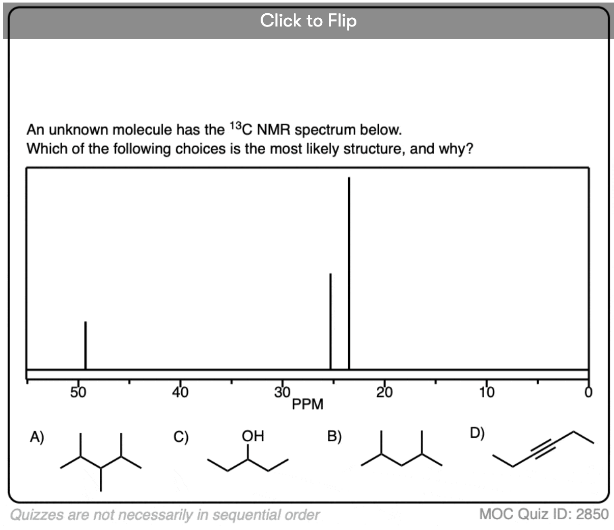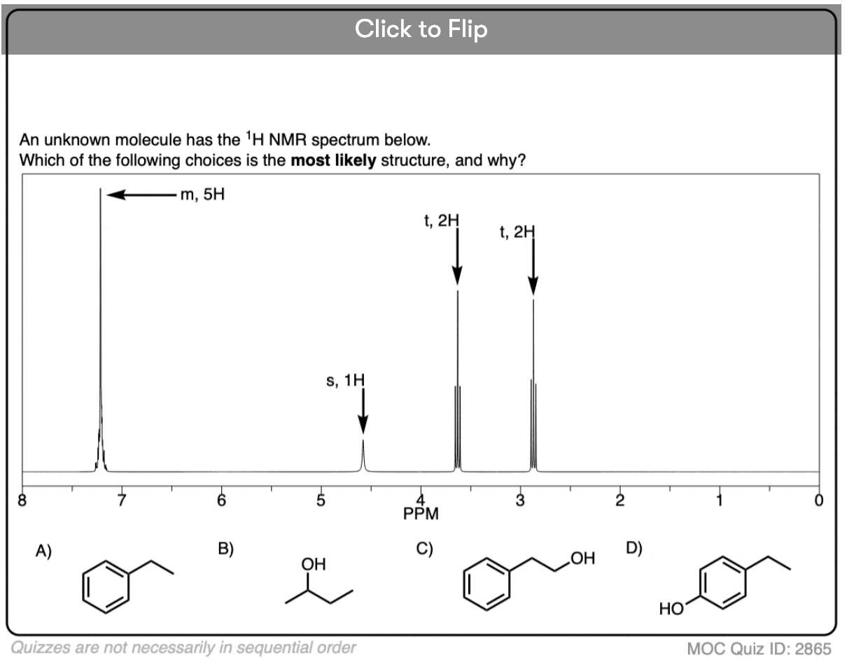 This page contains quizzes on spectroscopy topics, starting from the simplest – index of hydrogen deficiency – up to UV-Visible spectroscopy, IR spectroscopy, mass spectrometry (MS), and 13C and 1H NMR spectroscopy.