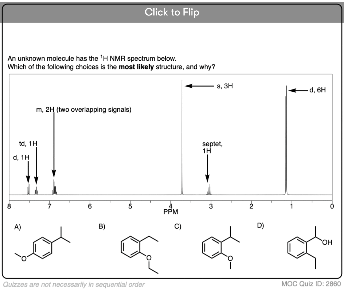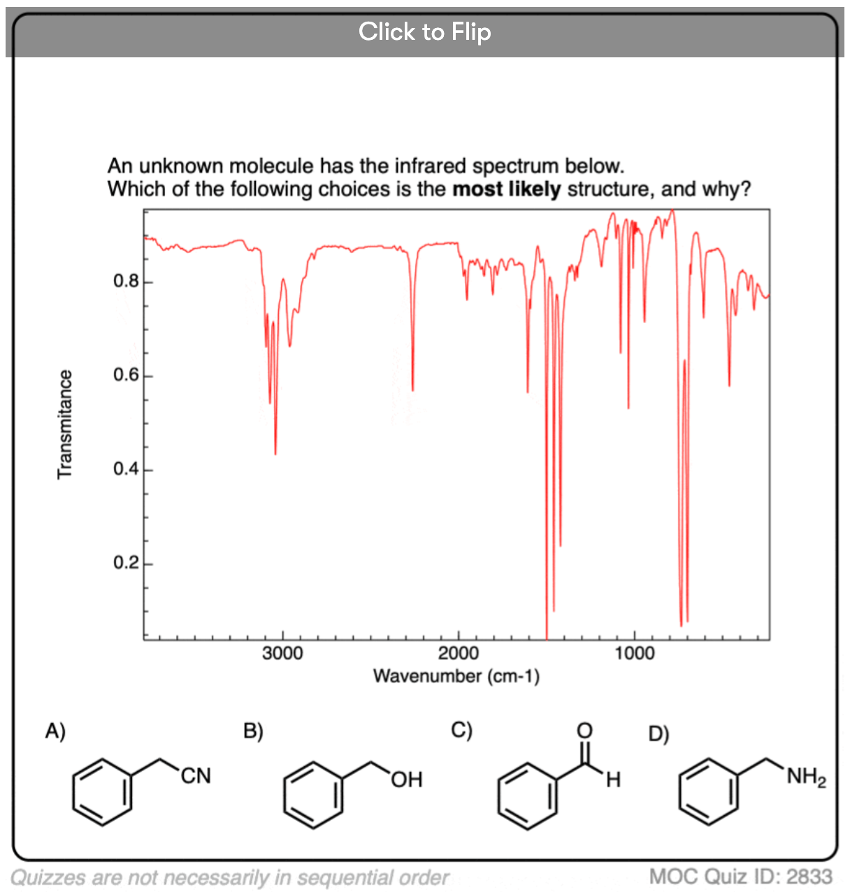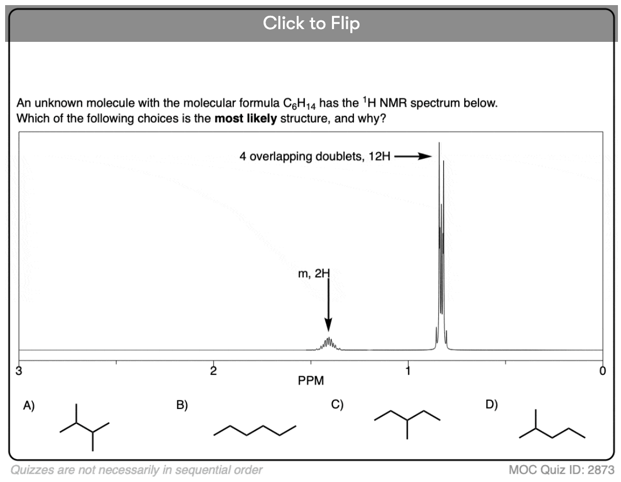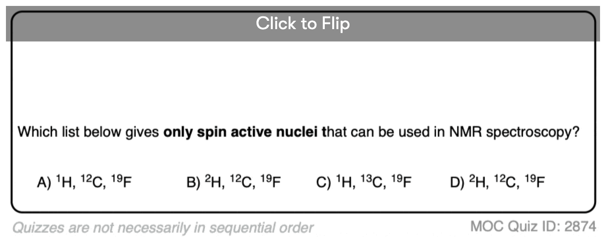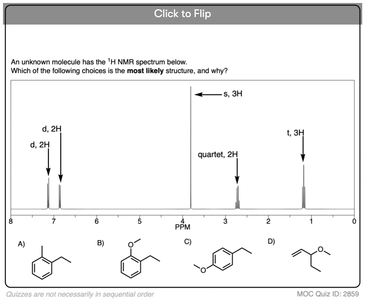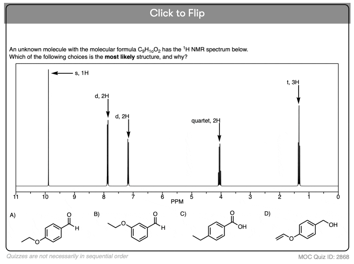 This page contains quizzes on spectroscopy topics, starting from the simplest – index of hydrogen deficiency – up to UV-Visible spectroscopy, IR spectroscopy, mass spectrometry (MS), and 13C and 1H NMR spectroscopy.
